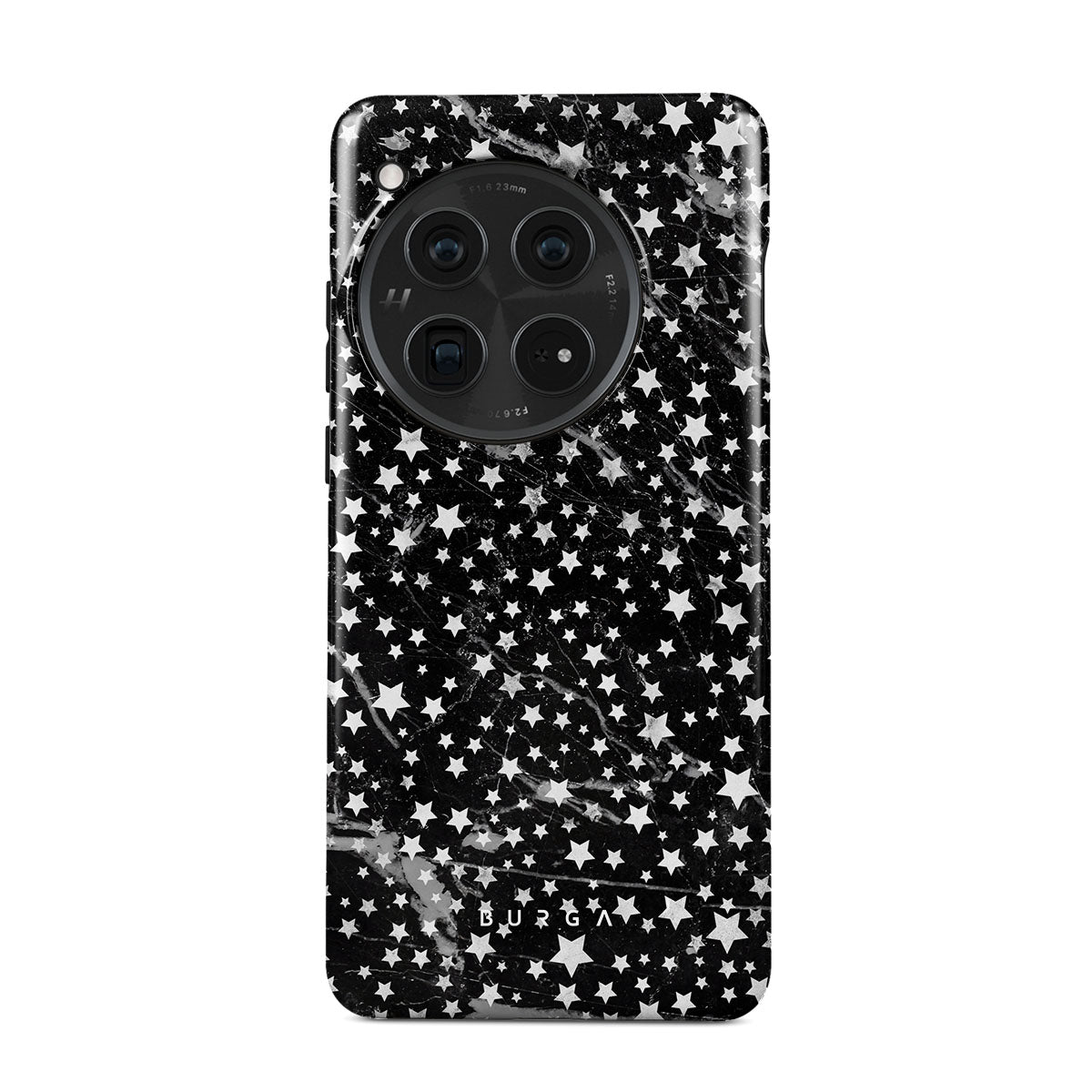 OnePlus 12 phone case is inspired by the sky above us. Here the charming star pattern meets with a trendy black and white marble. Add the unique combination to your wardrobe and transform your protective phone case into a fashion accessory.