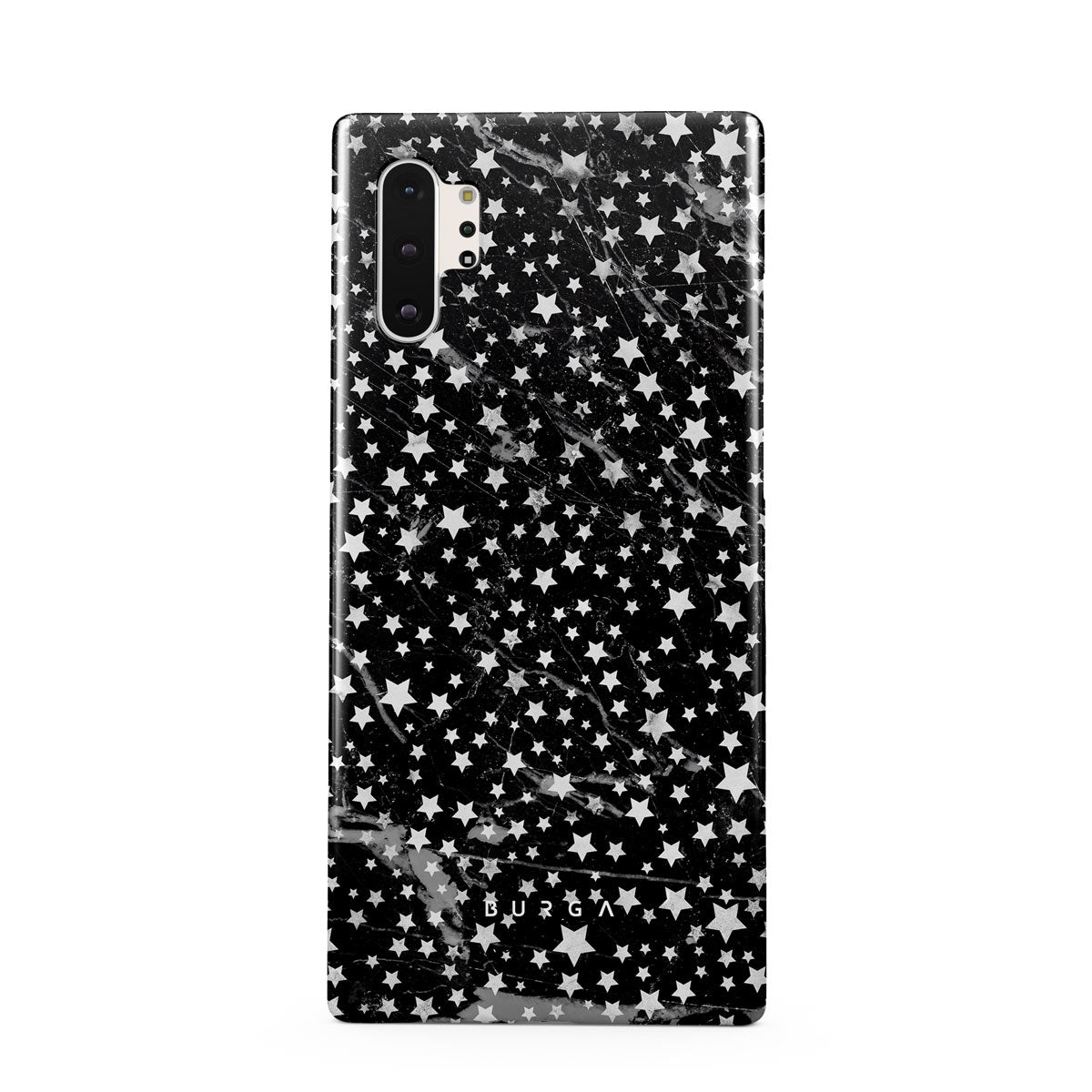 Samsung Galaxy Note 10 Plus phone case is inspired by the sky above us. Here the charming star pattern meets with a trendy black and white marble. Add the unique combination to your wardrobe and transform your protective phone case into a fashion accessory.