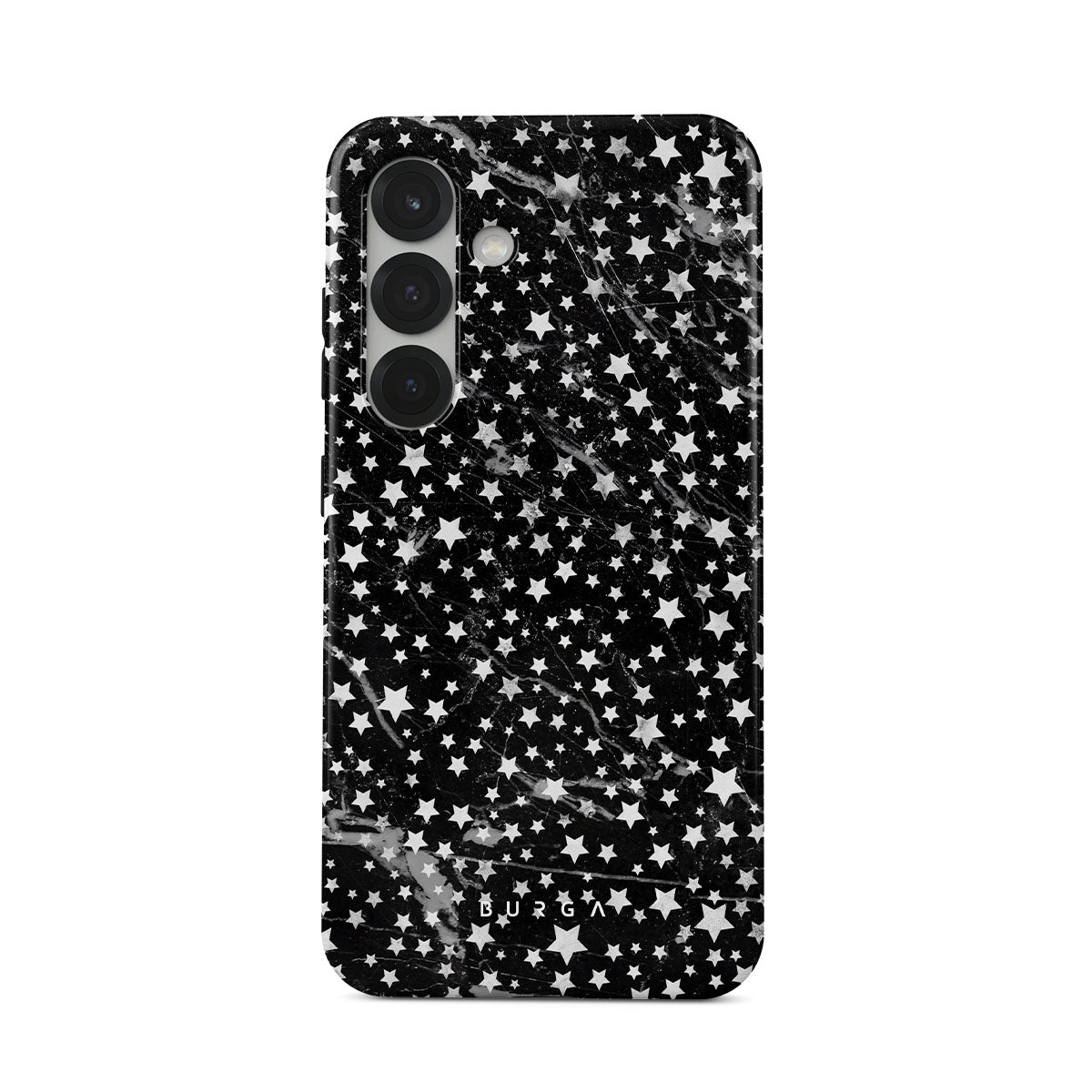 Samsung Galaxy S25 Plus phone case is inspired by the sky above us. Here the charming star pattern meets with a trendy black and white marble. Add the unique combination to your wardrobe and transform your protective phone case into a fashion accessory.