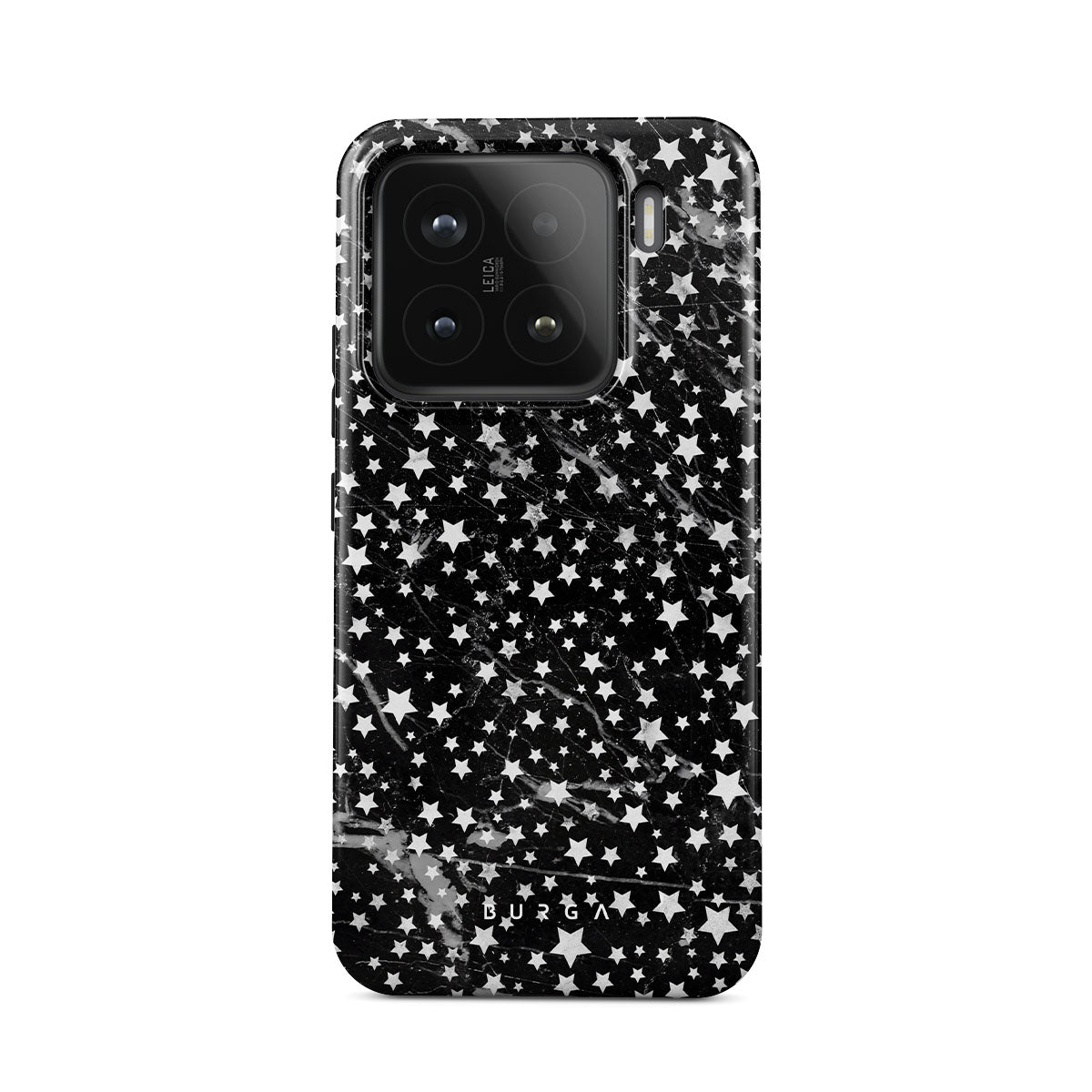 Xiaomi 15 phone case is inspired by the sky above us. Here the charming star pattern meets with a trendy black and white marble. Add the unique combination to your wardrobe and transform your protective phone case into a fashion accessory.