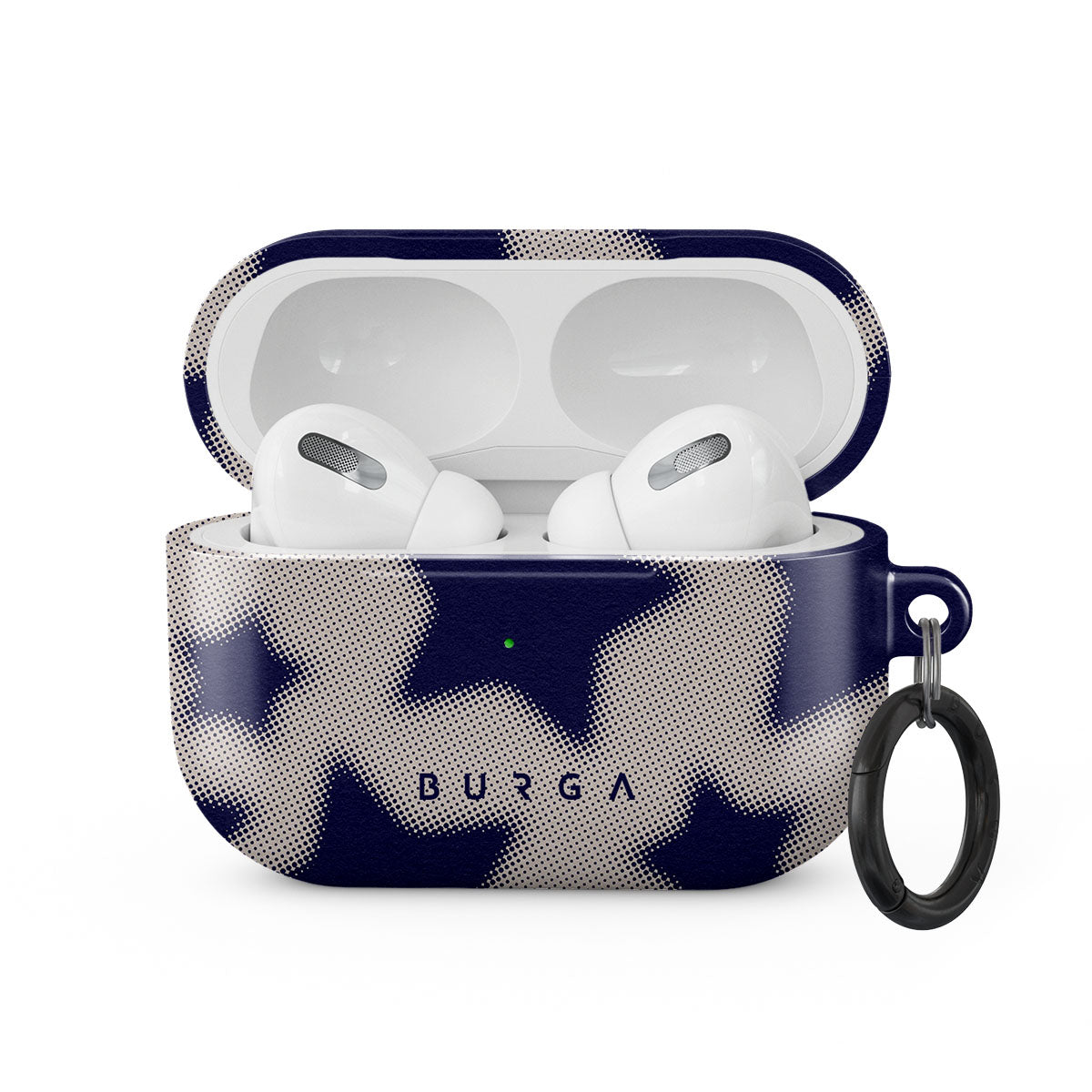 Rock a touch of '90s nostalgia with the Starstruck Apple Airpods Pro case cover design. Its nude background is scattered with bold blue stars; each star hints at stories of hope and youthful dreams, blending simplicity with depth.