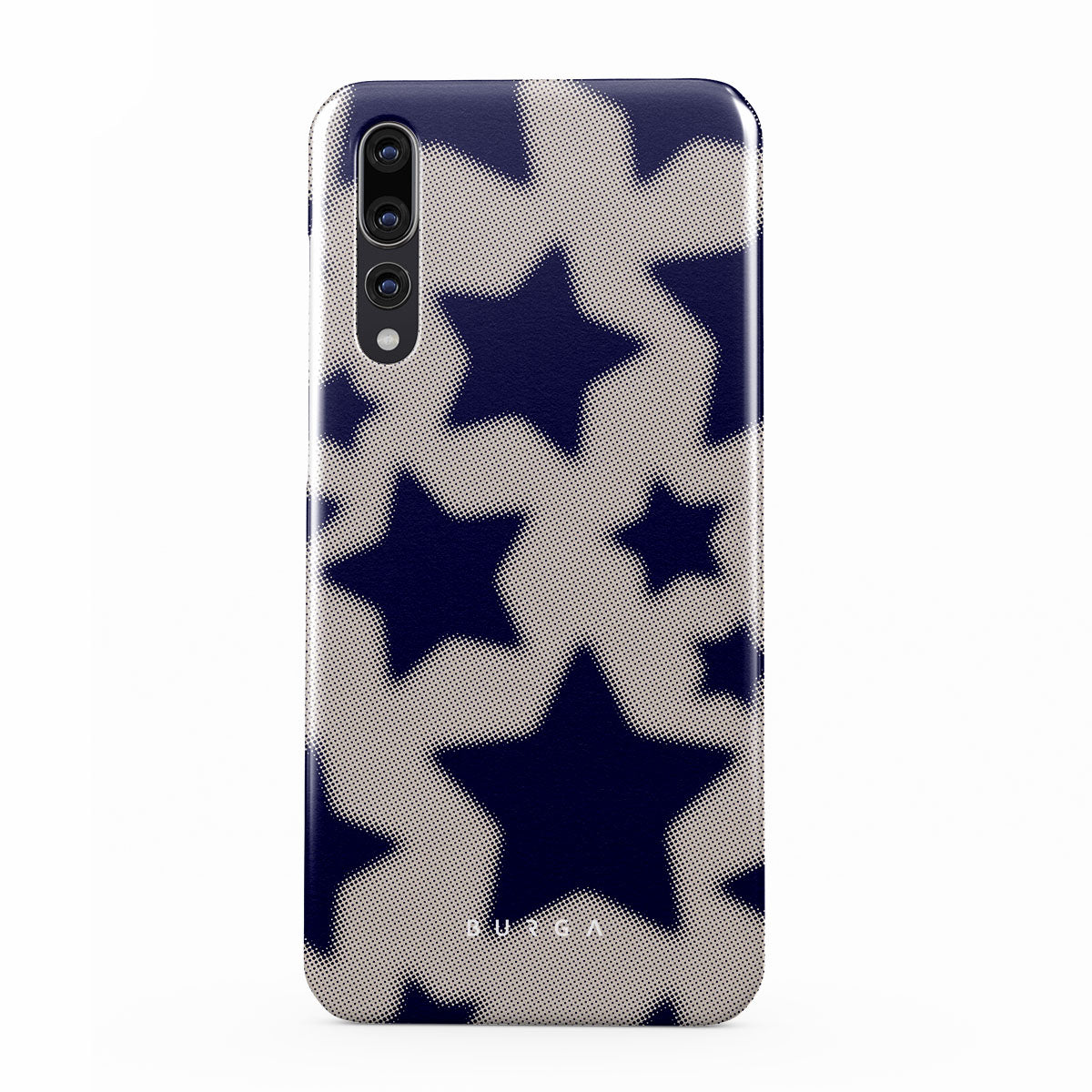Rock a touch of '90s nostalgia with the Starstruck Huawei P20 phone case design. Its nude background is scattered with bold blue stars; each star hints at stories of hope and youthful dreams, blending simplicity with depth.