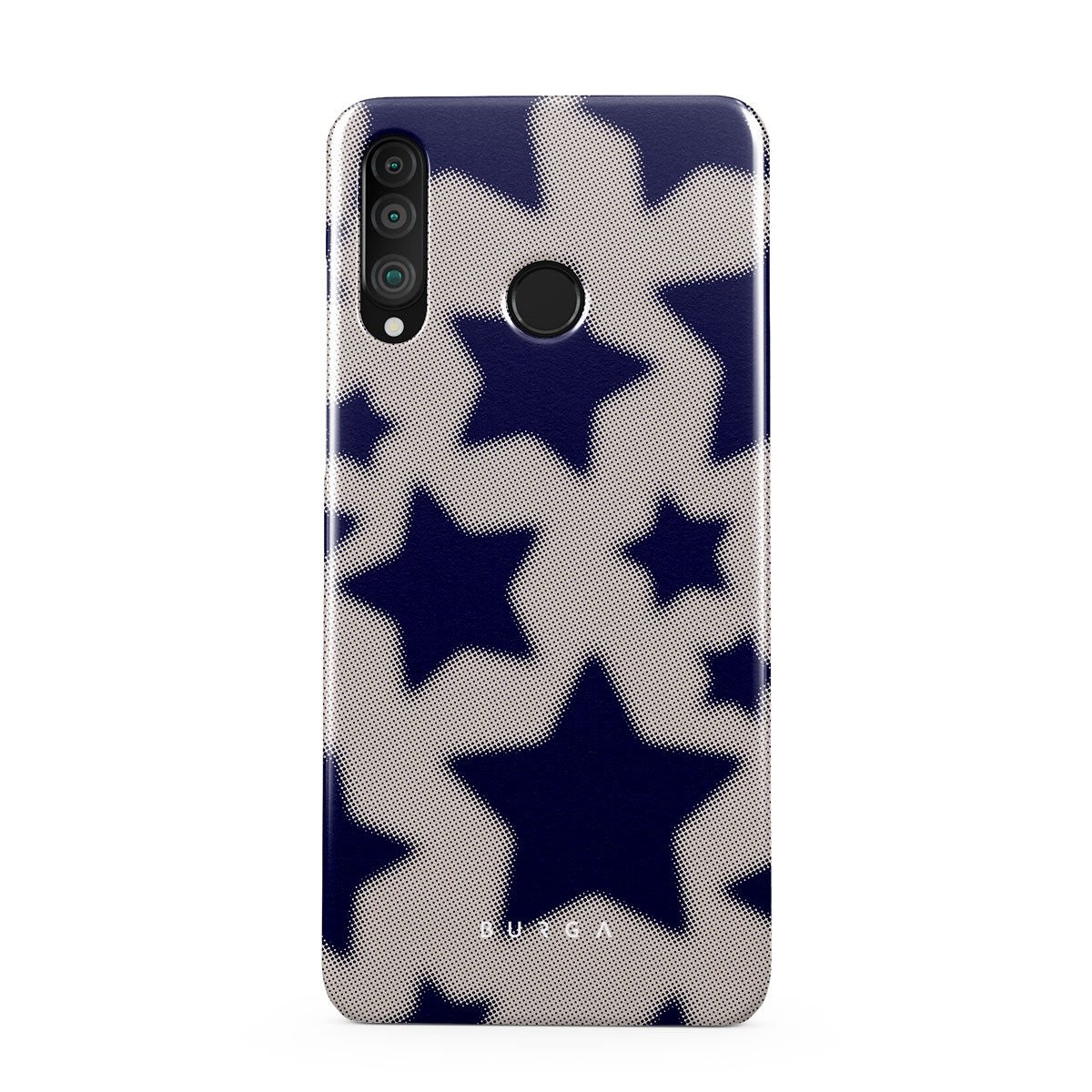 Rock a touch of '90s nostalgia with the Starstruck Huawei P30 Lite phone case design. Its nude background is scattered with bold blue stars; each star hints at stories of hope and youthful dreams, blending simplicity with depth.