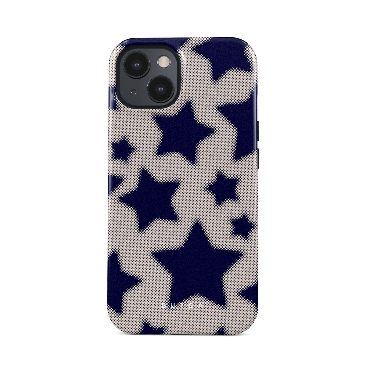 Rock a touch of '90s nostalgia with the Starstruck iPhone 14 Plus phone case design. Its nude background is scattered with bold blue stars; each star hints at stories of hope and youthful dreams, blending simplicity with depth.