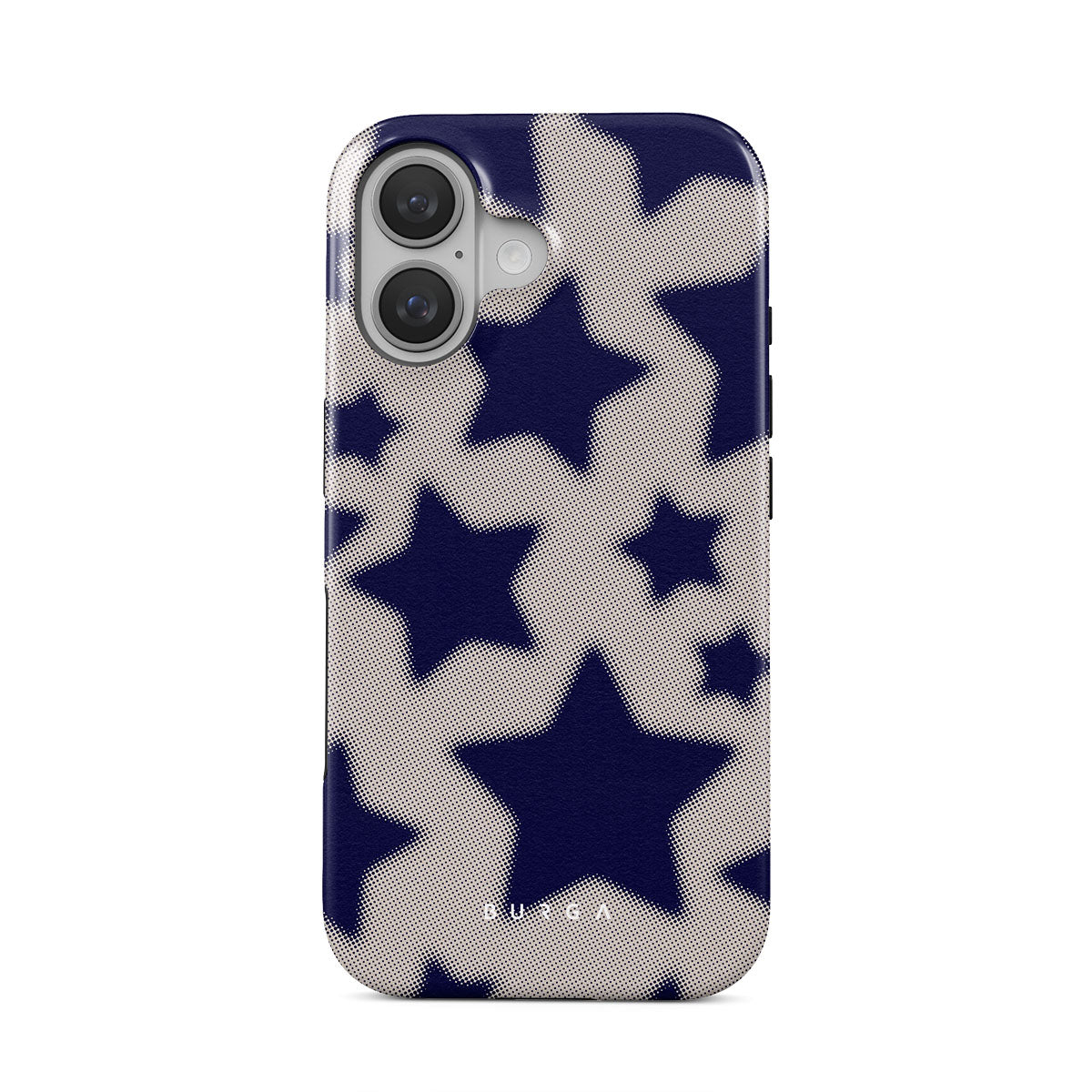 Rock a touch of '90s nostalgia with the Starstruck iPhone 16 Plus phone case design. Its nude background is scattered with bold blue stars; each star hints at stories of hope and youthful dreams, blending simplicity with depth.