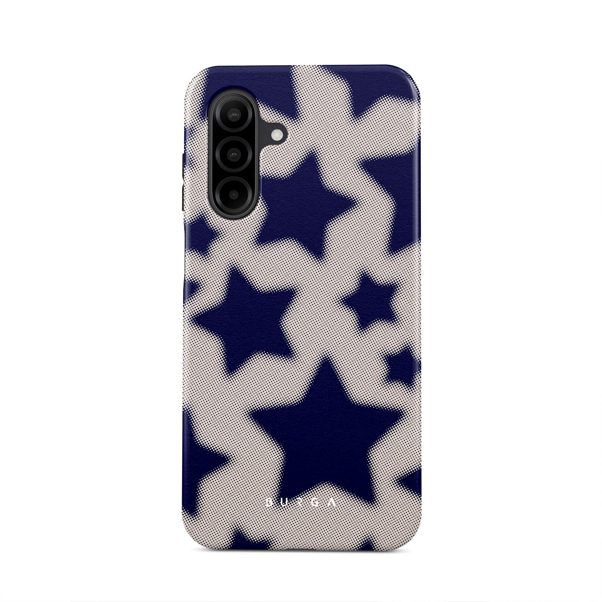 Rock a touch of '90s nostalgia with the Starstruck Samsung Galaxy A26 5G phone case design. Its nude background is scattered with bold blue stars; each star hints at stories of hope and youthful dreams, blending simplicity with depth.