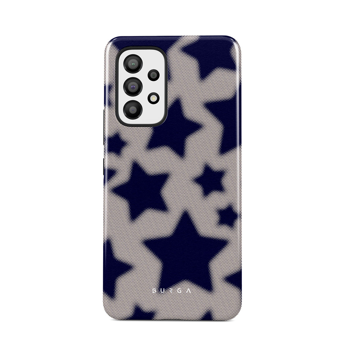 Rock a touch of '90s nostalgia with the Starstruck Samsung Galaxy A53 phone case design. Its nude background is scattered with bold blue stars; each star hints at stories of hope and youthful dreams, blending simplicity with depth.