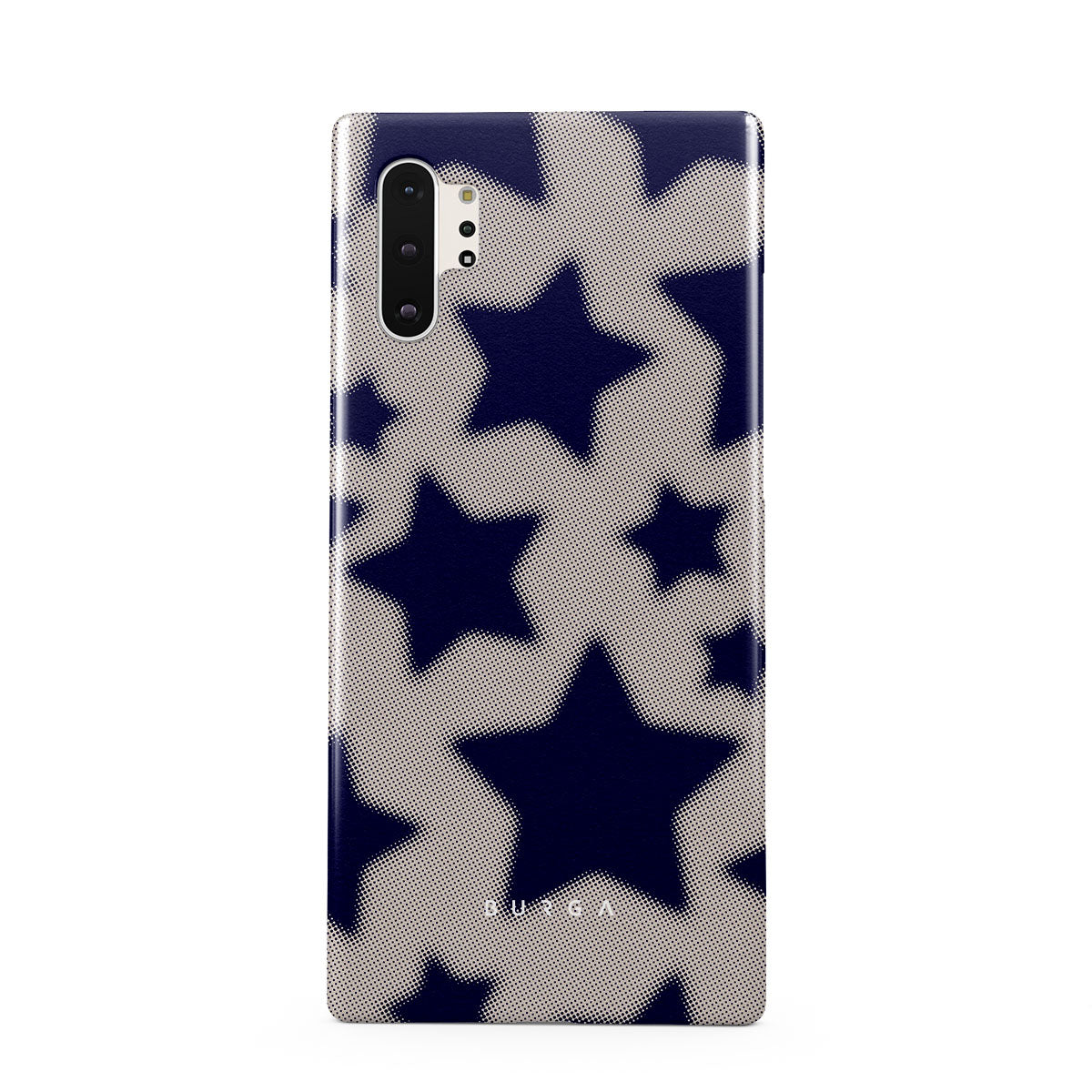 Rock a touch of '90s nostalgia with the Starstruck Samsung Galaxy Note 10 Plus phone case design. Its nude background is scattered with bold blue stars; each star hints at stories of hope and youthful dreams, blending simplicity with depth.