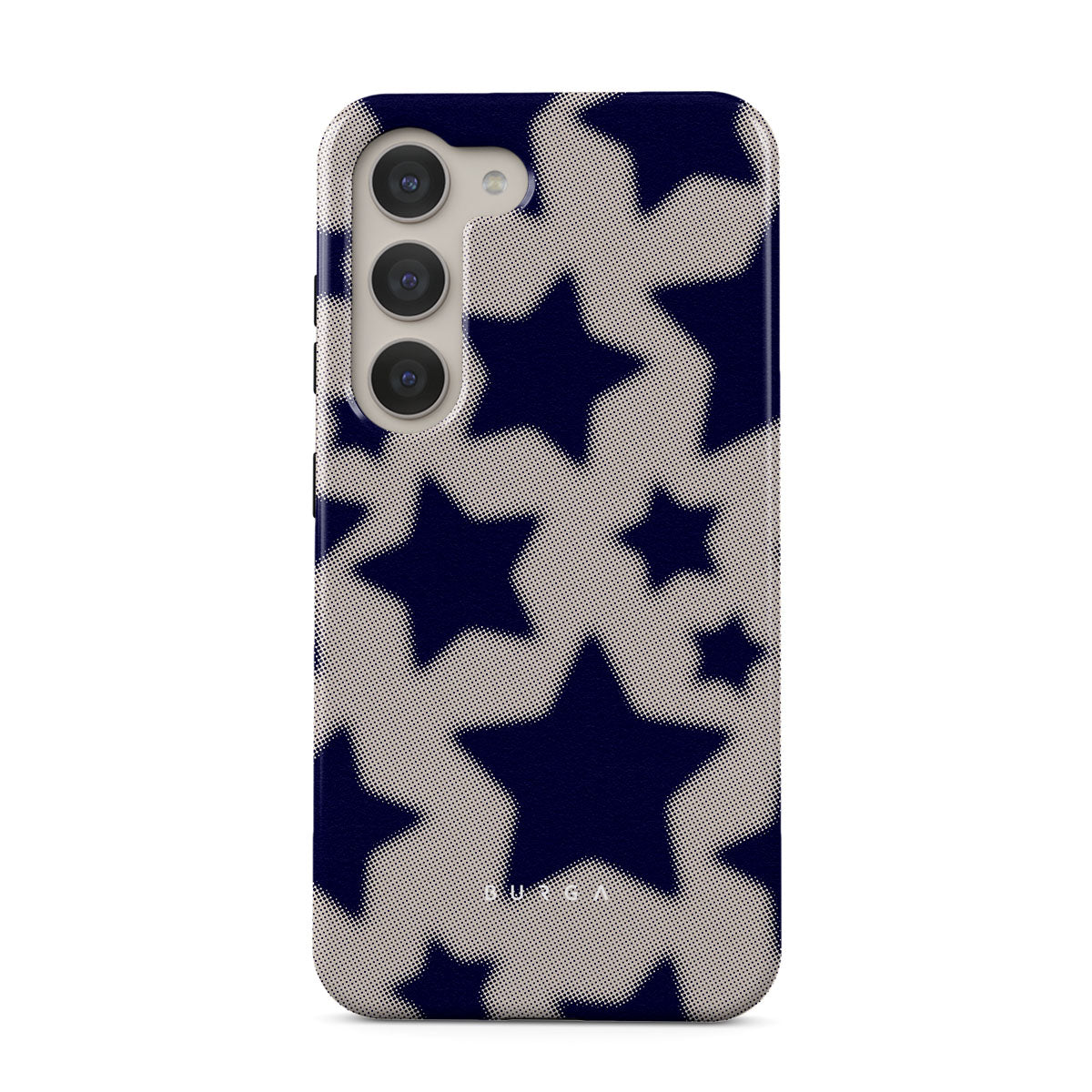 Rock a touch of '90s nostalgia with the Starstruck Samsung Galaxy S23 phone case design. Its nude background is scattered with bold blue stars; each star hints at stories of hope and youthful dreams, blending simplicity with depth.