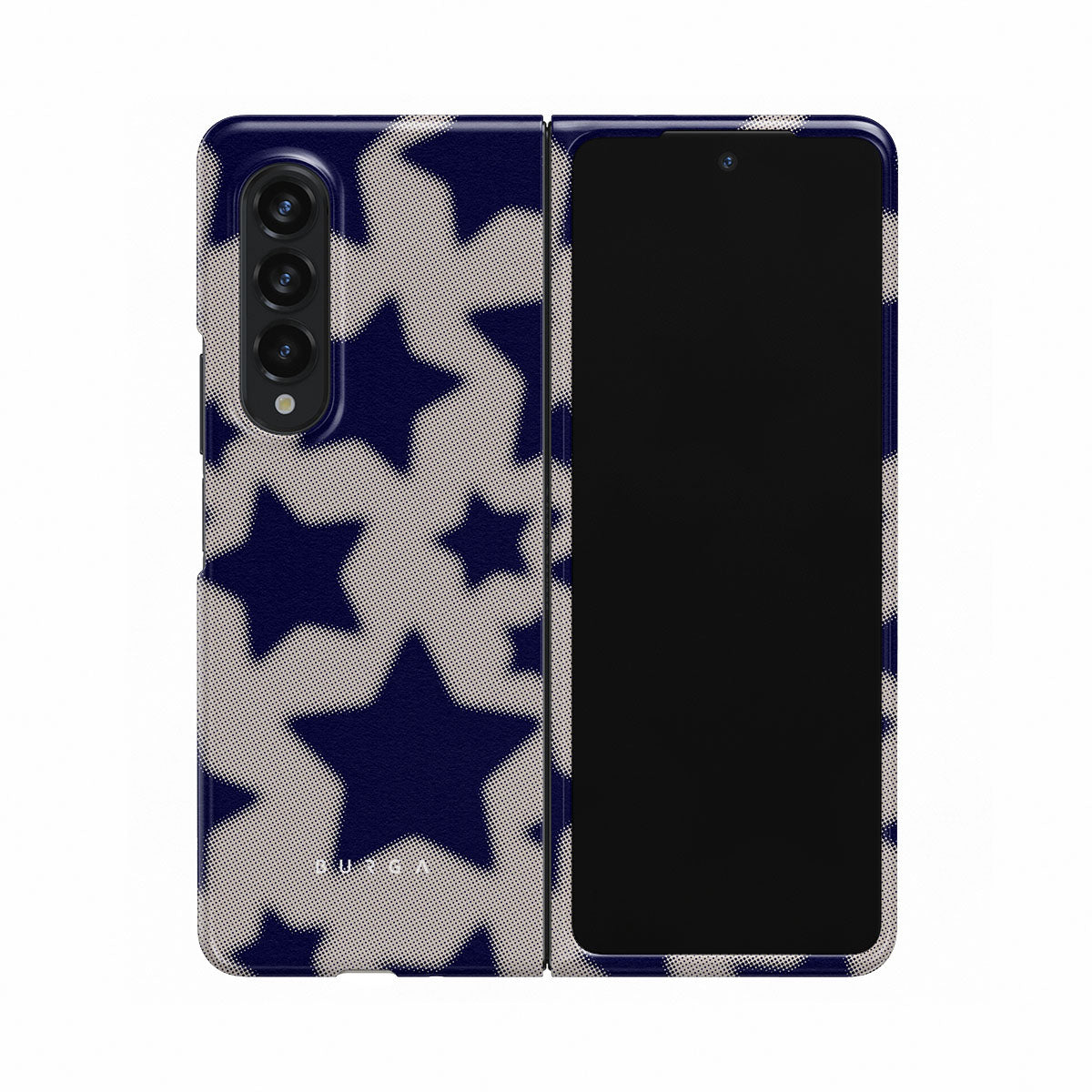Rock a touch of '90s nostalgia with the Starstruck Samsung Galaxy Z Fold 3 phone case design. Its nude background is scattered with bold blue stars; each star hints at stories of hope and youthful dreams, blending simplicity with depth.