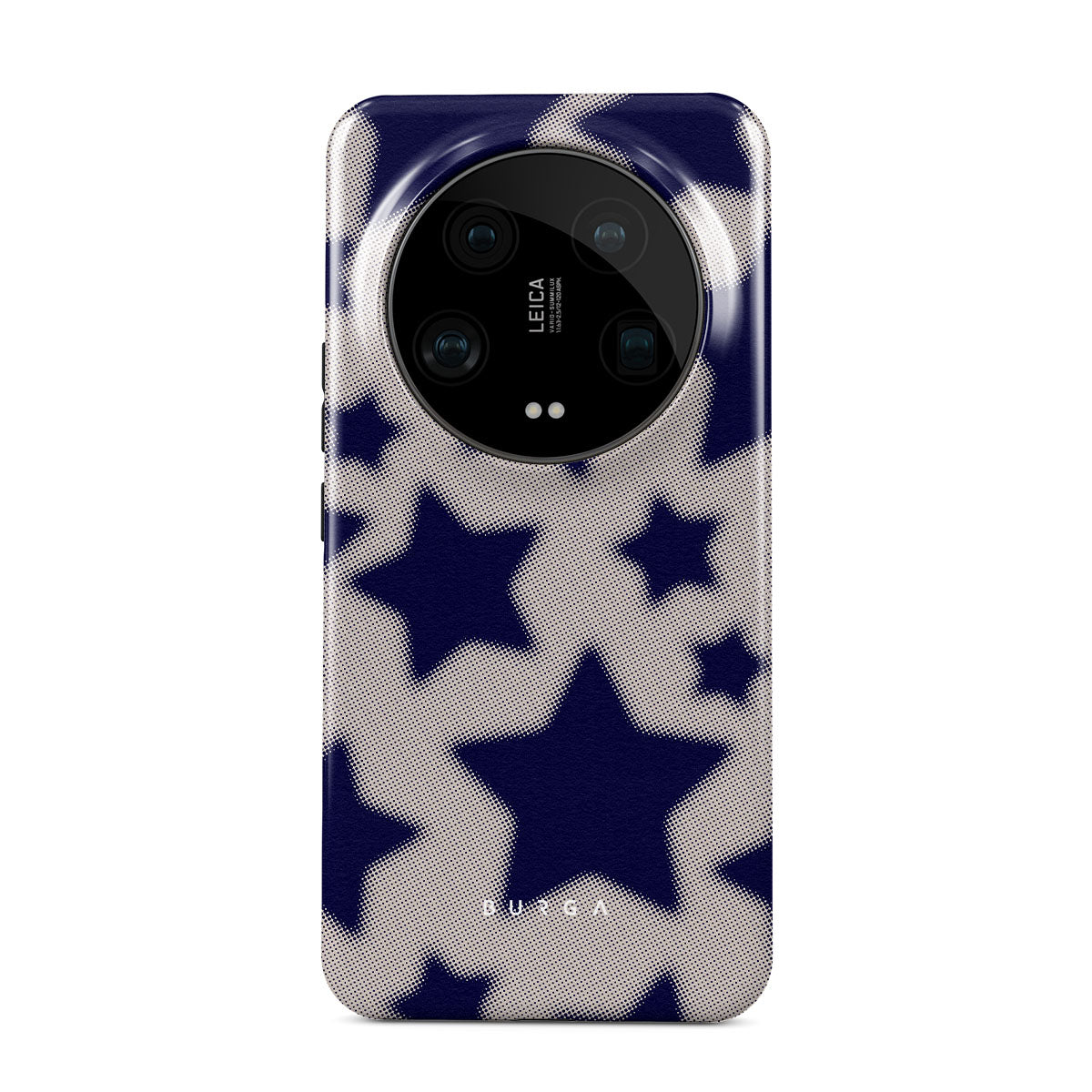 Rock a touch of '90s nostalgia with the Starstruck Xiaomi 14 Ultra phone case design. Its nude background is scattered with bold blue stars; each star hints at stories of hope and youthful dreams, blending simplicity with depth.