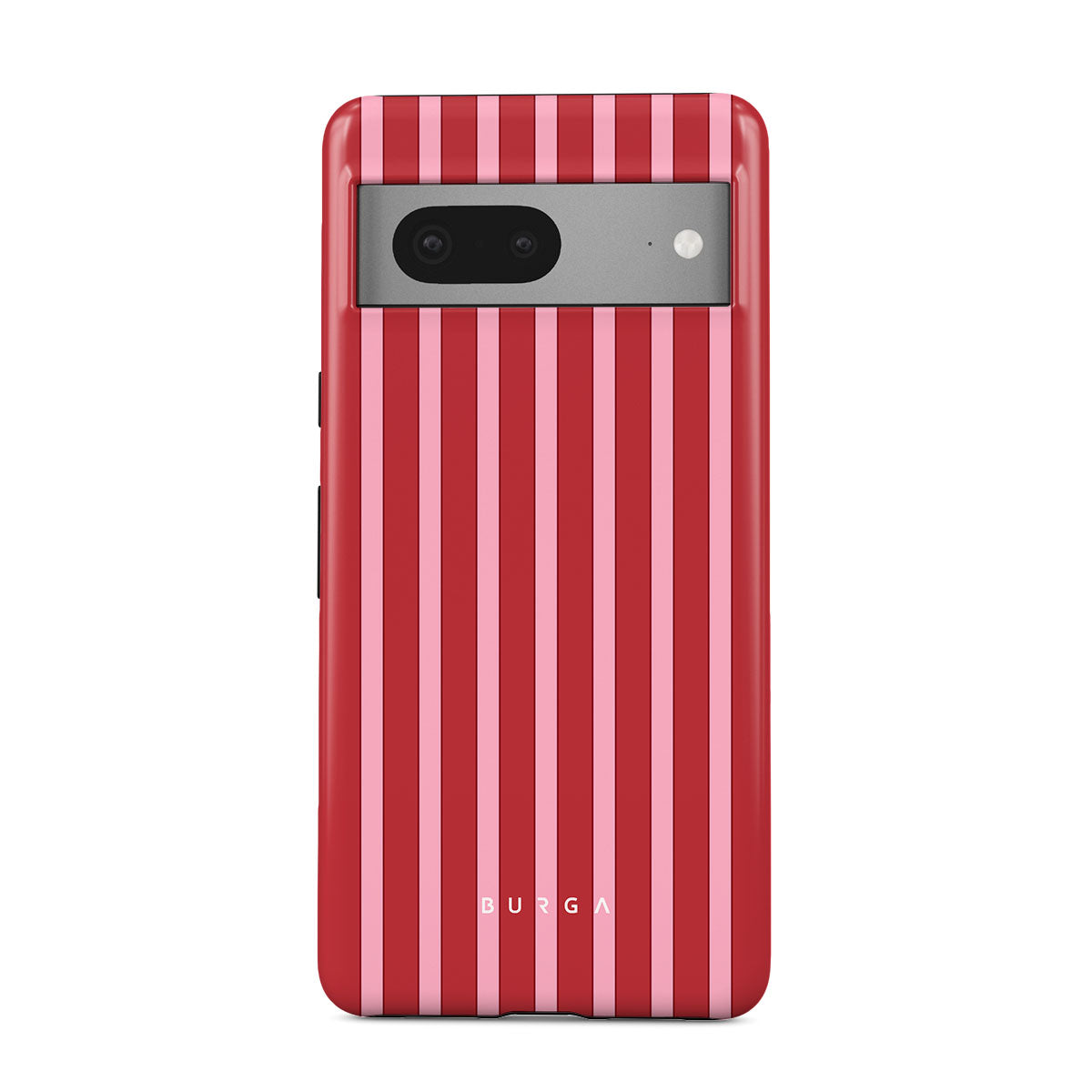 Stripes of red, like strawberry swirls on toast, this Google Pixel 7a phone case design brings the sweet memory of breakfasts that start with a spread of homemade love.