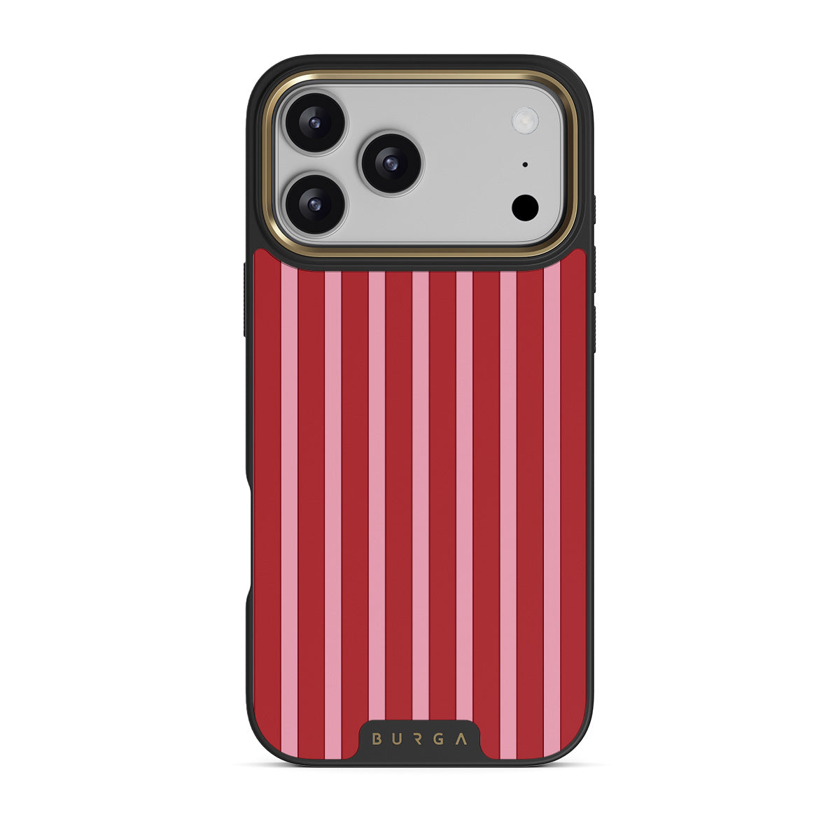Stripes of red, like strawberry swirls on toast, this iPhone 17 Pro Max phone case design brings the sweet memory of breakfasts that start with a spread of homemade love.