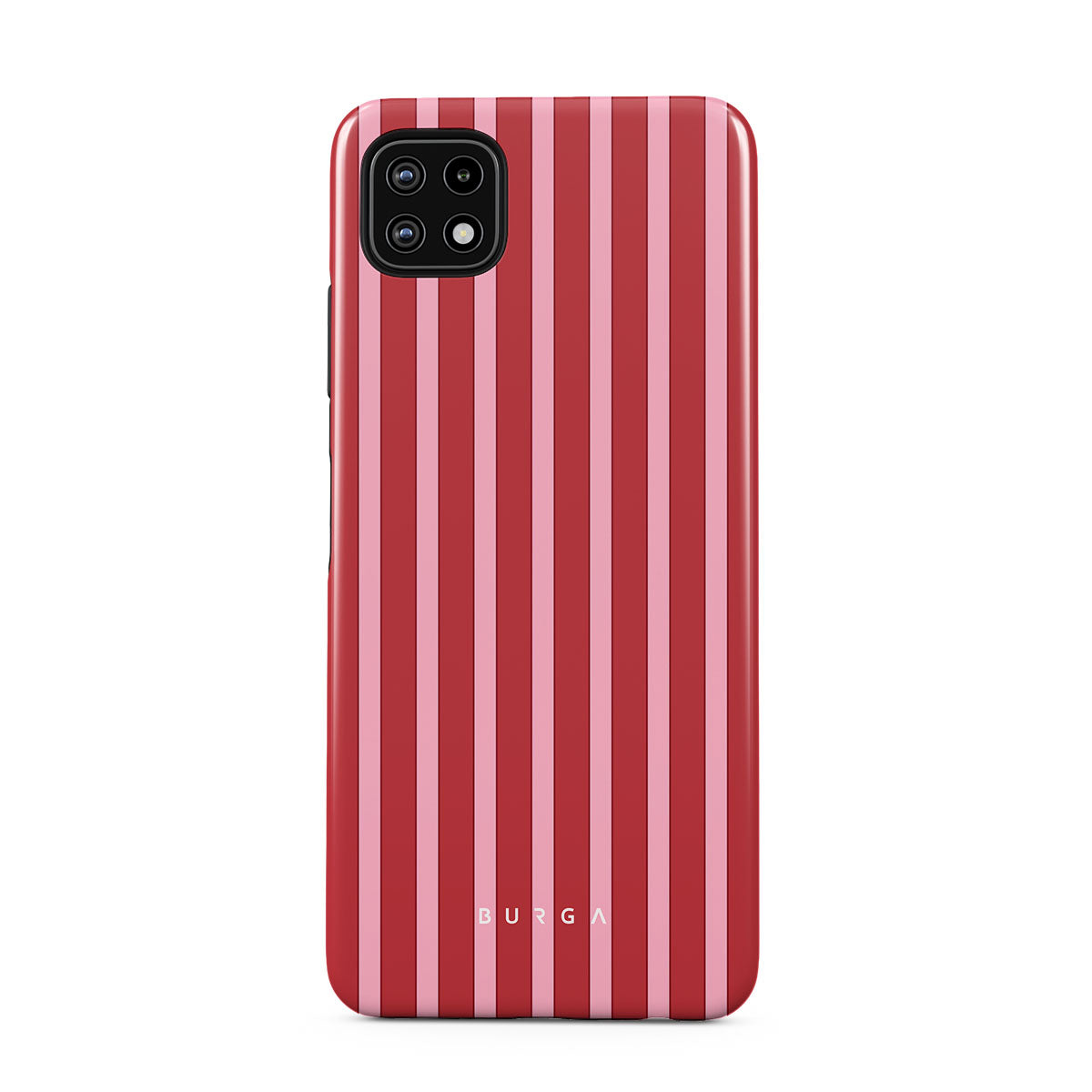 Stripes of red, like strawberry swirls on toast, this Samsung Galaxy A22 5G phone case design brings the sweet memory of breakfasts that start with a spread of homemade love.