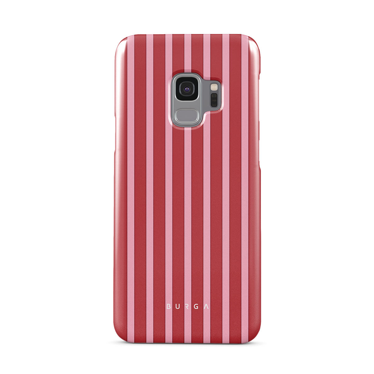 Stripes of red, like strawberry swirls on toast, this Samsung Galaxy S9 phone case design brings the sweet memory of breakfasts that start with a spread of homemade love.