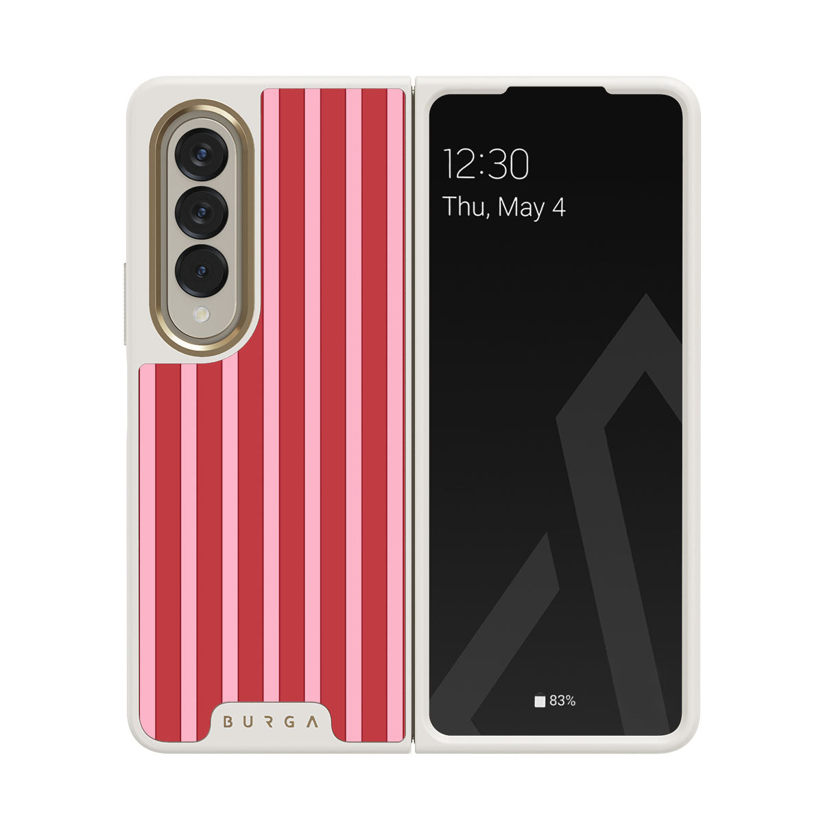 Stripes of red, like strawberry swirls on toast, this Samsung Galaxy Z Fold 4 phone case design brings the sweet memory of breakfasts that start with a spread of homemade love.