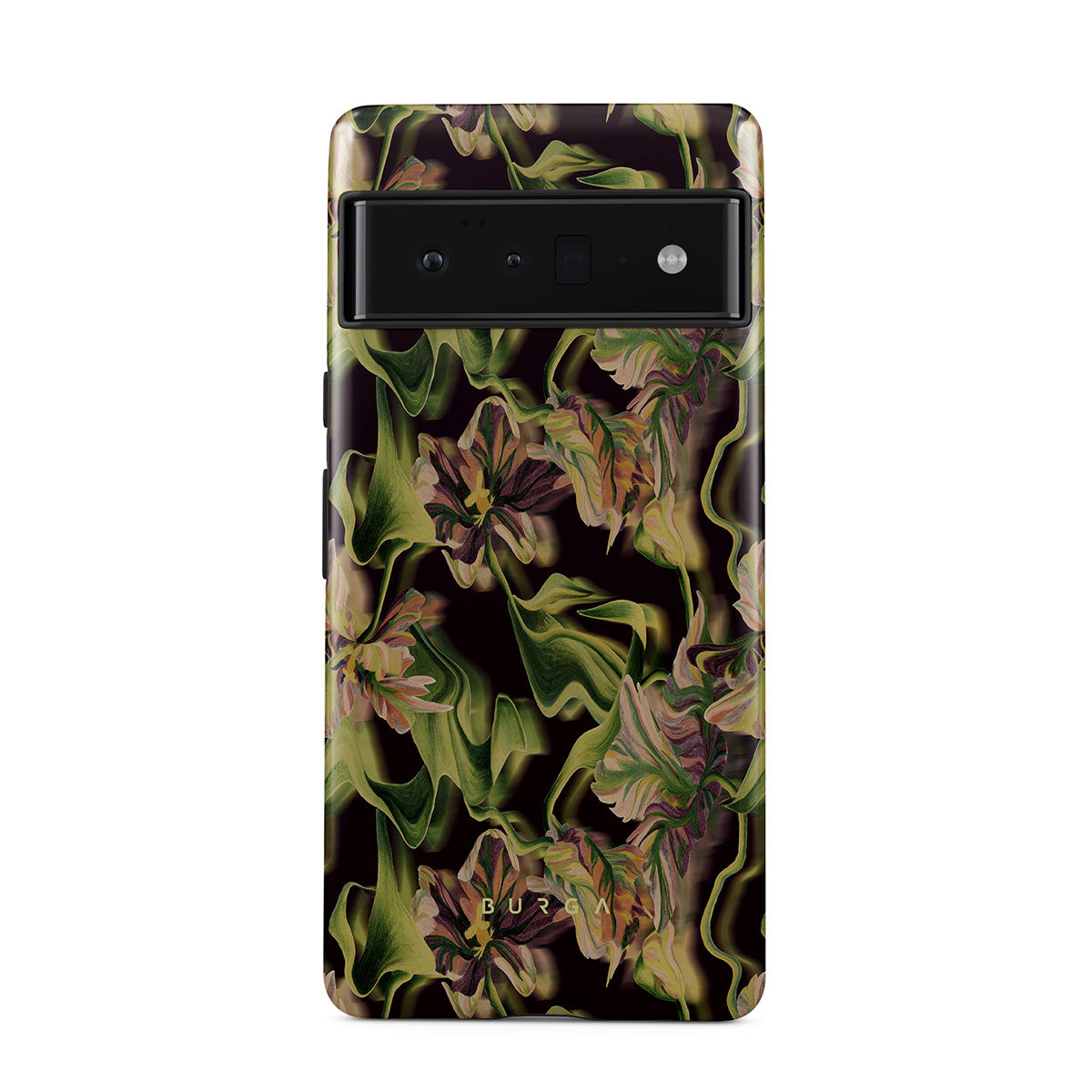 Let's wander into the world of humidity, fog, and deep green color. Our Subtropical Google Pixel 6 Pro phone case will add that exotic touch to your life. The flower pattern is as clear as it seems to be melting away. The purple and orange shades in the flowers will add that subtle splash of color to your style without being too provocative.