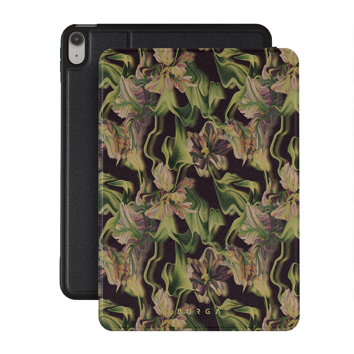 Let's wander into the world of humidity, fog, and deep green color. Our Subtropical iPad 10.9 (A16/10th Gen) folio case will add that exotic touch to your life. The flower pattern is as clear as it seems to be melting away. The purple and orange shades in the flowers will add that subtle splash of color to your style without being too provocative.