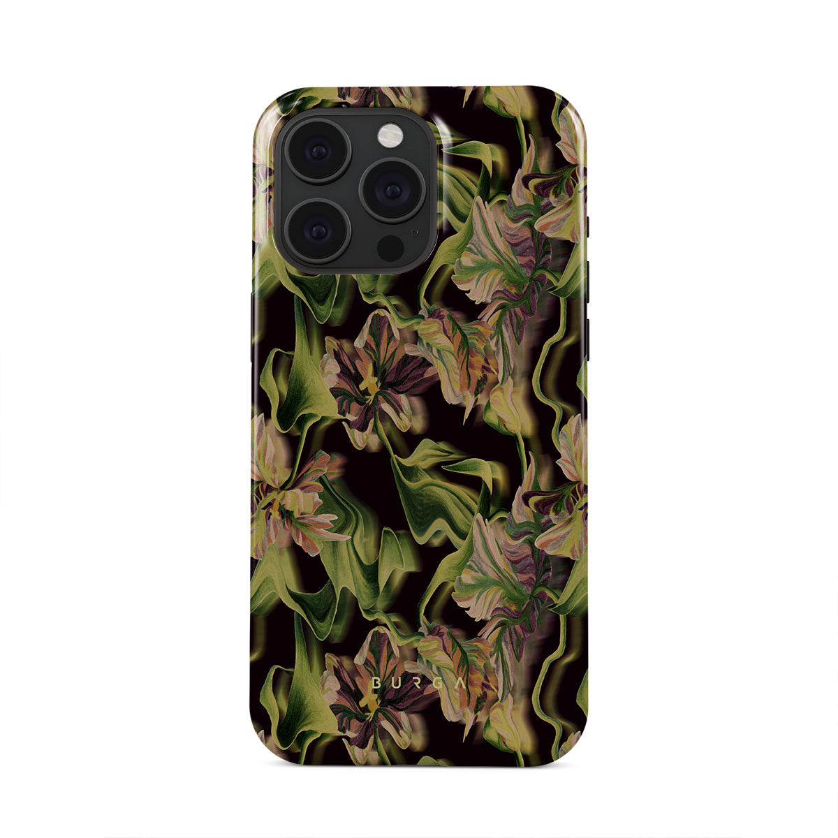 Let's wander into the world of humidity, fog, and deep green color. Our Subtropical iPhone 15 Pro phone case will add that exotic touch to your life. The flower pattern is as clear as it seems to be melting away. The purple and orange shades in the flowers will add that subtle splash of color to your style without being too provocative.