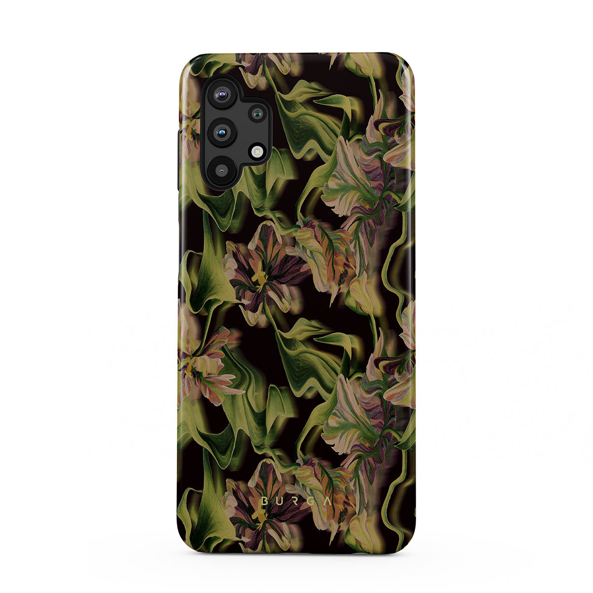 Let's wander into the world of humidity, fog, and deep green color. Our Subtropical Samsung Galaxy A32 5G phone case will add that exotic touch to your life. The flower pattern is as clear as it seems to be melting away. The purple and orange shades in the flowers will add that subtle splash of color to your style without being too provocative.