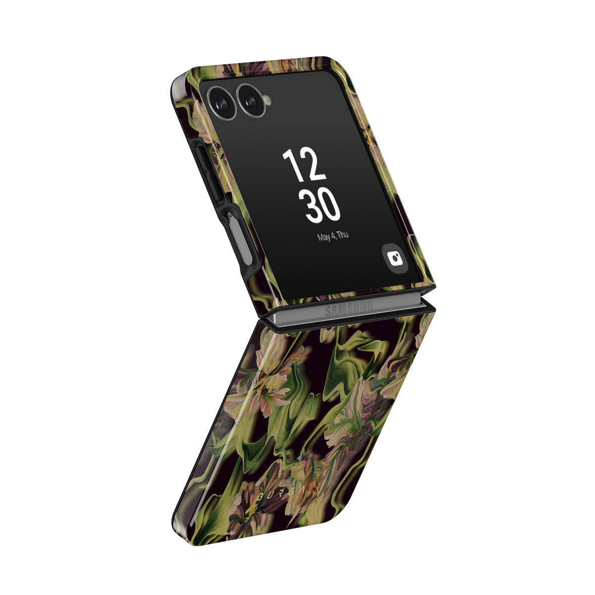 Let's wander into the world of humidity, fog, and deep green color. Our Subtropical Samsung Galaxy Z Flip 7 phone case will add that exotic touch to your life. The flower pattern is as clear as it seems to be melting away. The purple and orange shades in the flowers will add that subtle splash of color to your style without being too provocative.