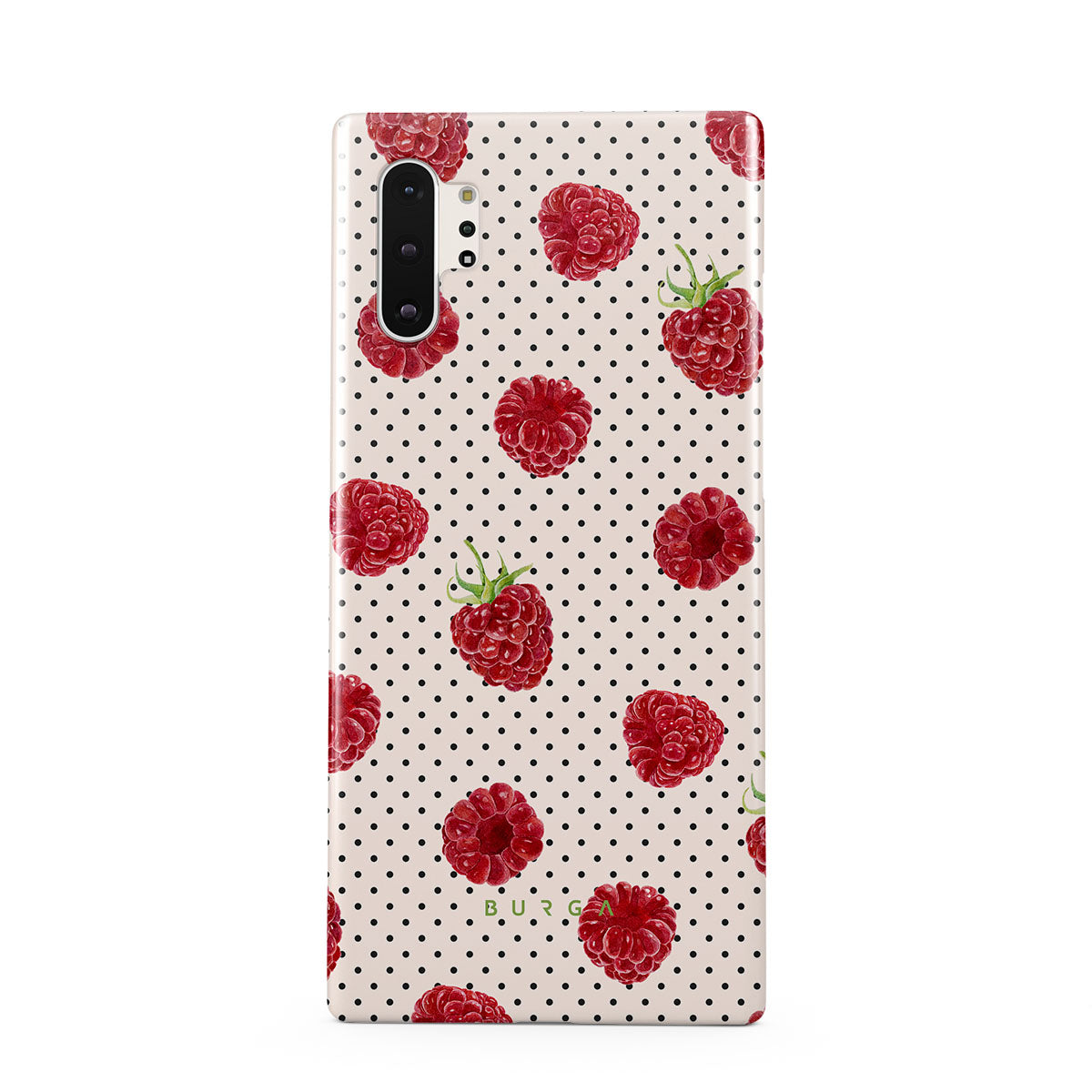 This Samsung Galaxy Note 10 Plus phone case design spills strawberries like secrets, the ones that taste of long days in the sun and remind you that some summers never end.