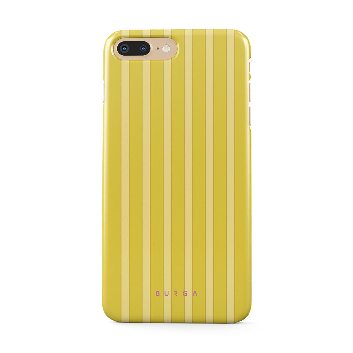 Bask in the glow of Sunbreak. This iPhone 7 Plus / 8 Plus phone case design features bold yellow stripes, reminiscent of beachside cabanas and sunny summer days. It’s a chic celebration of joy and simplicity.