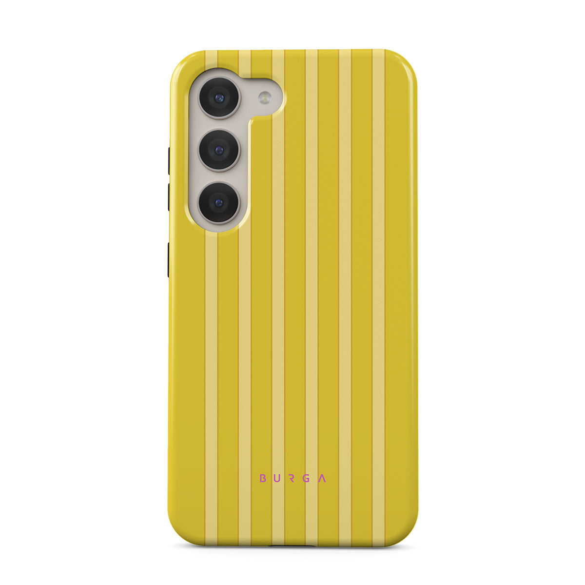 Bask in the glow of Sunbreak. This Samsung Galaxy S23 phone case design features bold yellow stripes, reminiscent of beachside cabanas and sunny summer days. It’s a chic celebration of joy and simplicity.