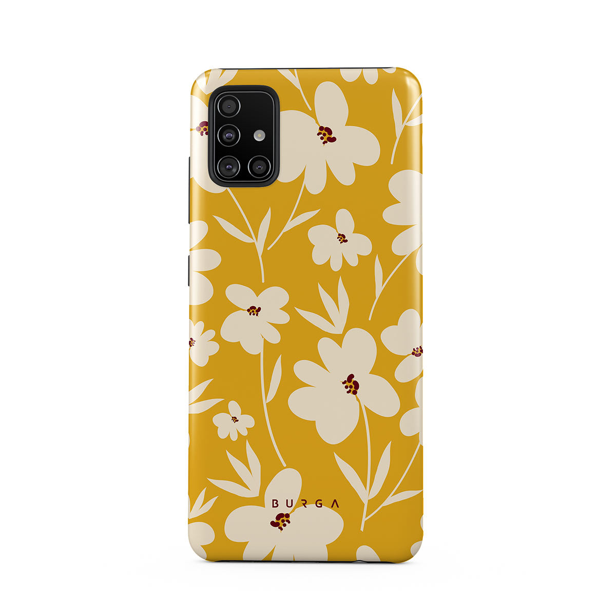 Full of fresh produce, warm rays of sunshine, and relaxing moments, our Sunday Market Samsung Galaxy A71 4G phone case encase all of this! The vintage mustard-yellow background with beautiful creme flowers will add that soft floral touch to your wardrobe while protecting your device from unexpected falls!