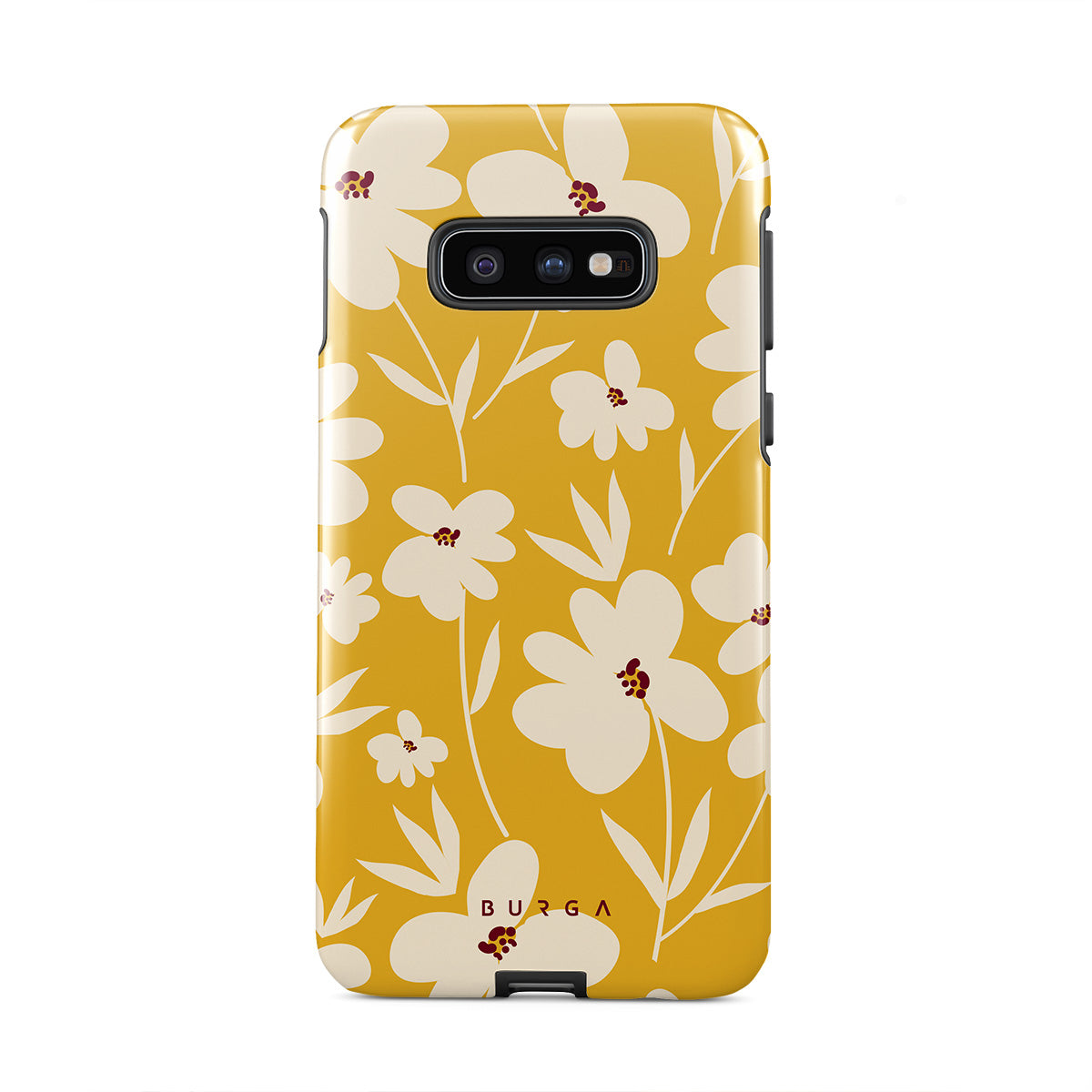 Full of fresh produce, warm rays of sunshine, and relaxing moments, our Sunday Market Samsung Galaxy S10E phone case encase all of this! The vintage mustard-yellow background with beautiful creme flowers will add that soft floral touch to your wardrobe while protecting your device from unexpected falls!