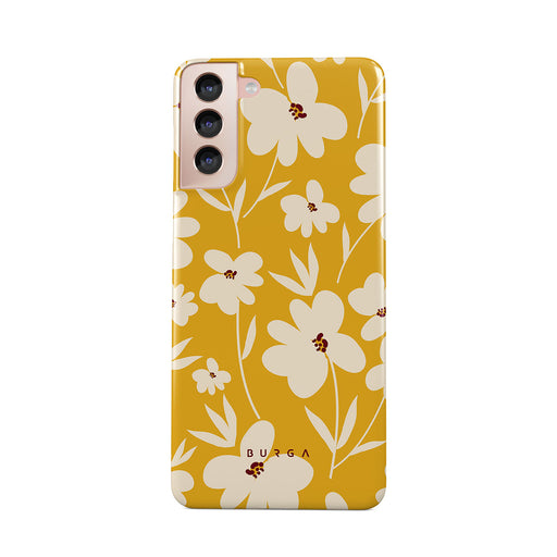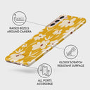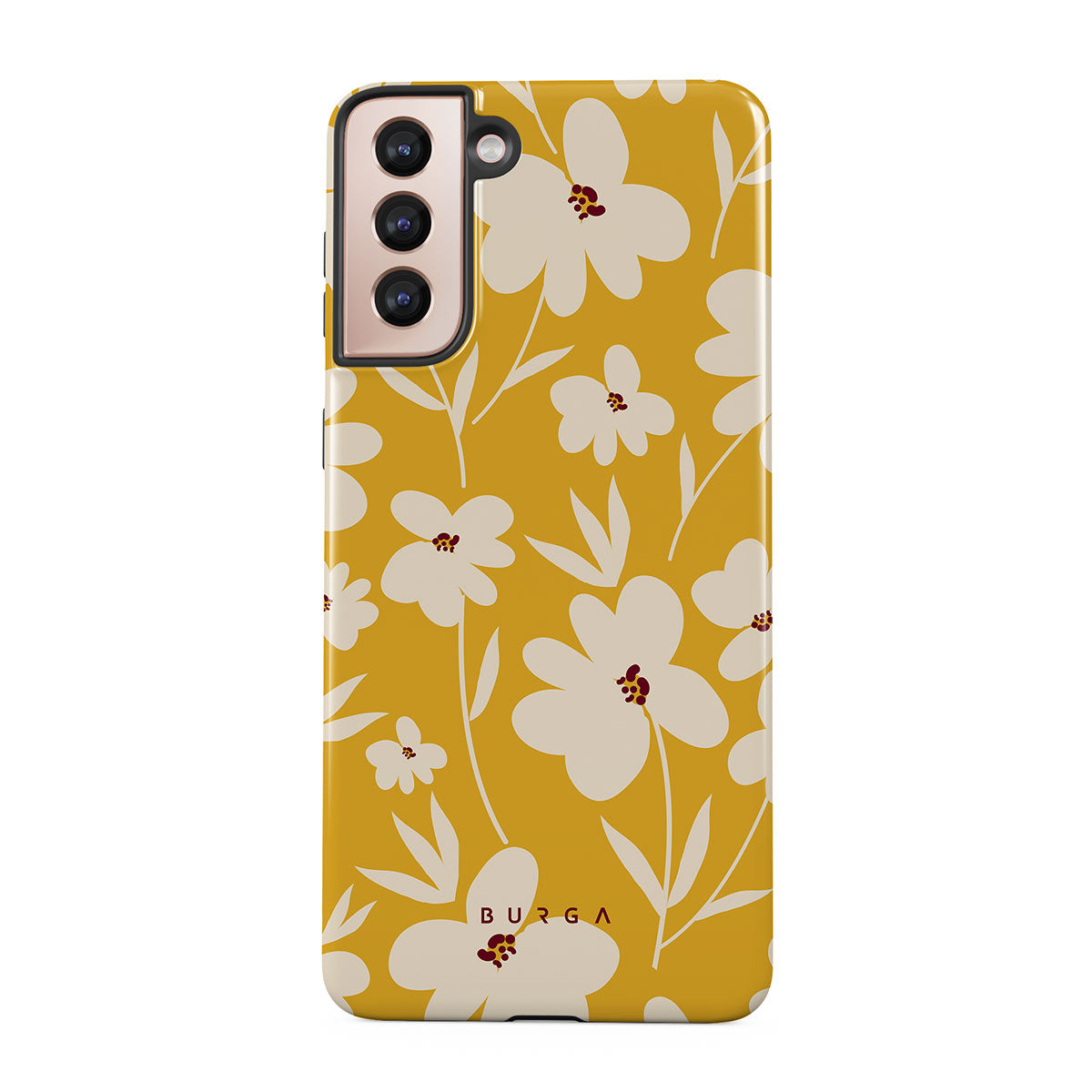 Full of fresh produce, warm rays of sunshine, and relaxing moments, our Sunday Market Samsung Galaxy S21 Plus phone case encase all of this! The vintage mustard-yellow background with beautiful creme flowers will add that soft floral touch to your wardrobe while protecting your device from unexpected falls!
