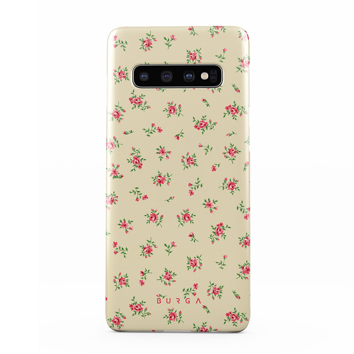 A daydream of soft pink petals on creamy yellow, reminiscent of that perfect light dress, twirling in the golden light of a lazy afternoon—that’s the Sundress Samsung Galaxy S10 Plus phone case design.