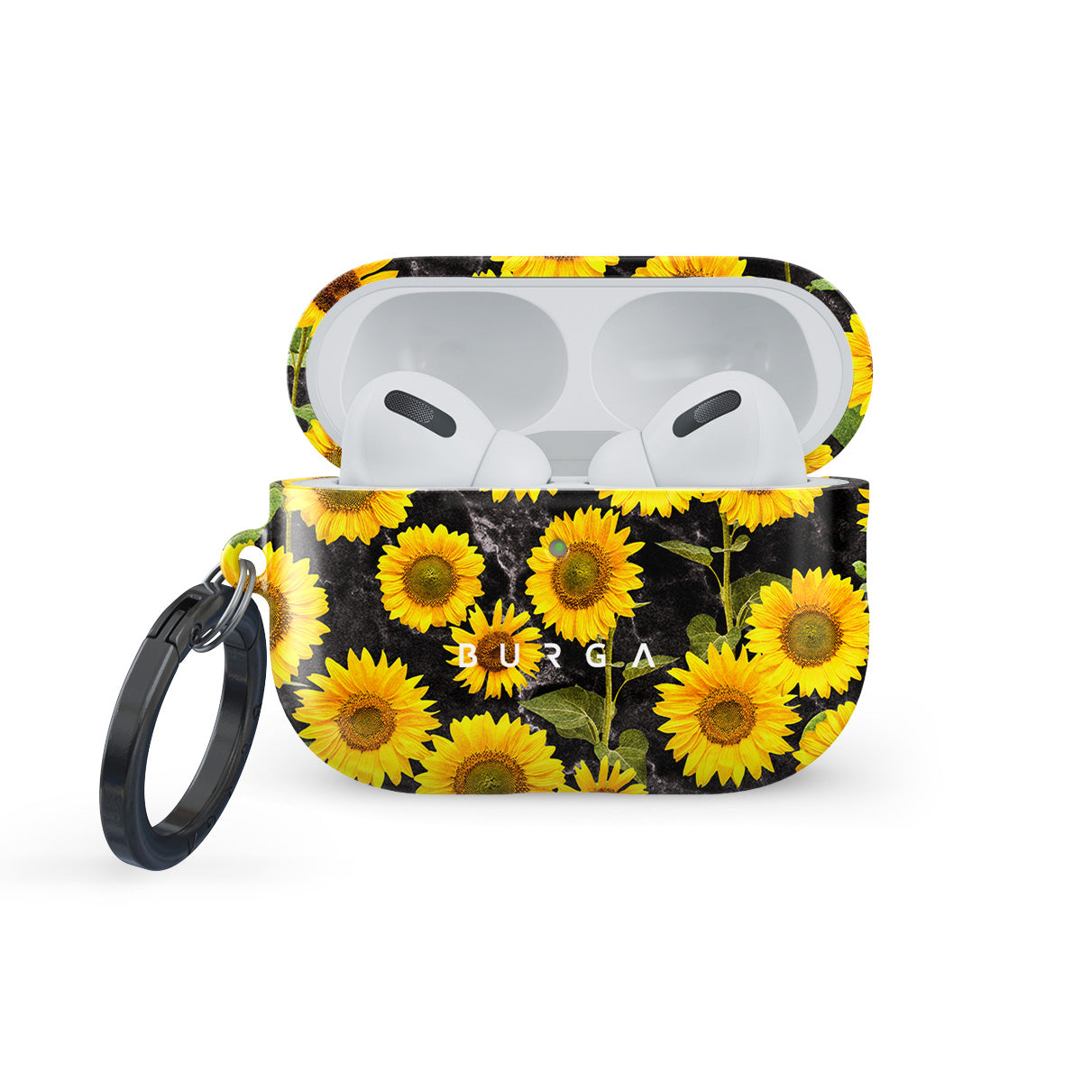 Add a burst of sunshine to your pocket with our Sunflower Glimmer Apple AirPods Pro 3 case cover. The radiating sunflower pattern will brighten any day while also protecting your case—no more choosing protection over style. Our case fits perfectly snug around Apple AirPods Pro 3 . “Like a glove!” one might say. And it won’t disrupt the wireless charging capabilities of the newer model. There’s even an LED light indicator to prove it (don’t worry, wired charging still works, too). When fitted, the BURGA case will protect the delicate Apple AirPods Pro 3 case beneath it from scratches, bumps, and drops while remaining scratch-free itself. Our signature design pattern prints are High Quality, and will never peel or fade away- thanks to our unique printing technology. And finally, a handy carabiner is there to make your life easier and more convenient: just snap it around your keys or belt loop and tackle the day head-on. Your music is right there by your side when you need it.