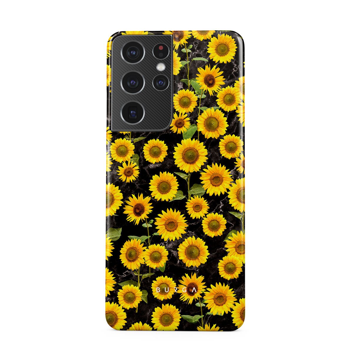 With our Sunflower Glimmer Samsung Galaxy S21 Ultra phone case, you can have a bit of sunshine in your pocket. Let the flower pattern bring inspiration and warmth to your everyday life, and also, do not forget the ultimate plus: heavy-duty protection that our case offers for your phone!