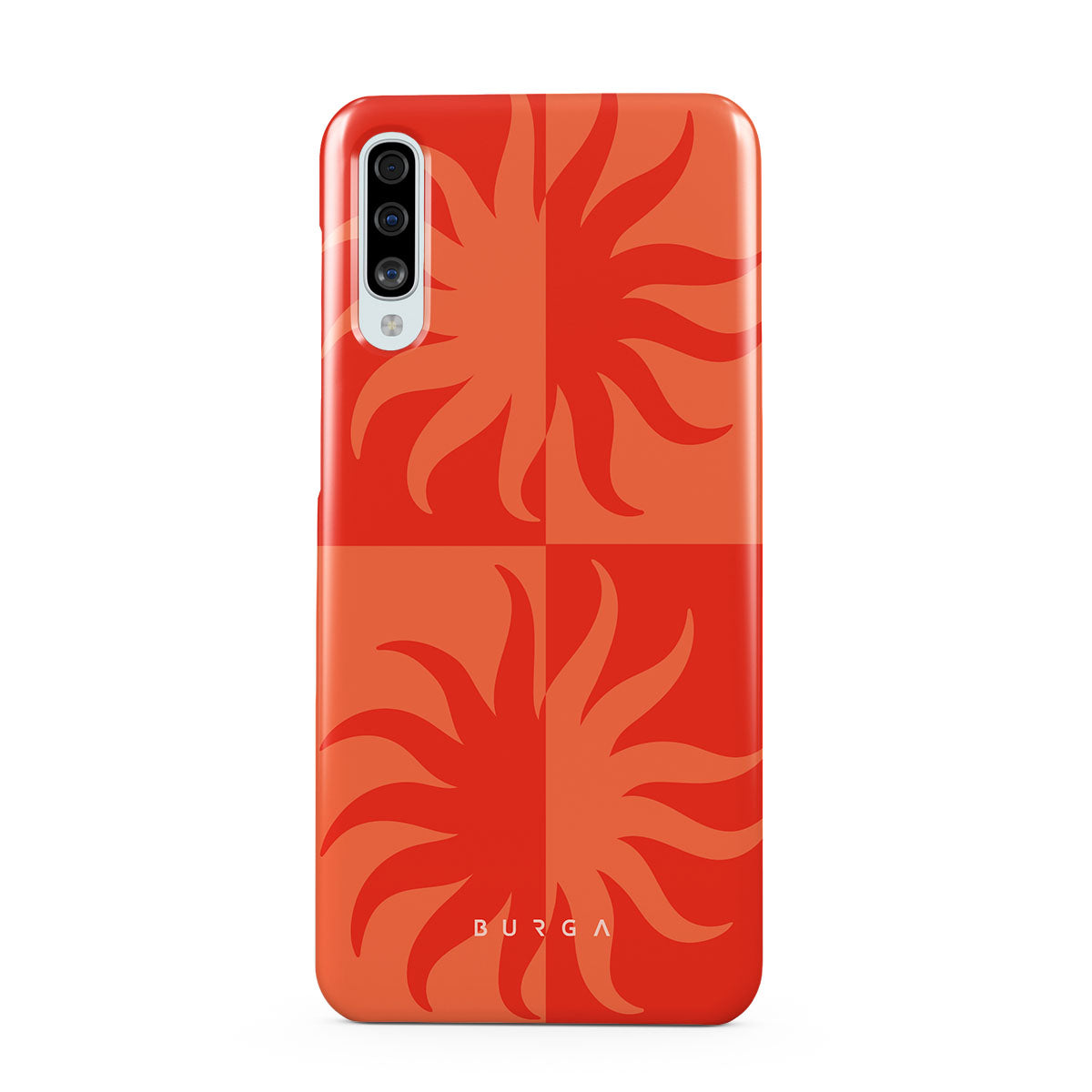 Feel the warmth with this fiery orange Samsung Galaxy A50 phone case design adorned with bold, radiant hues. Sunkissed captures the vibrant energy of sun-drenched days and the intense beauty of a tropical paradise. Perfect for those who love to stand out.