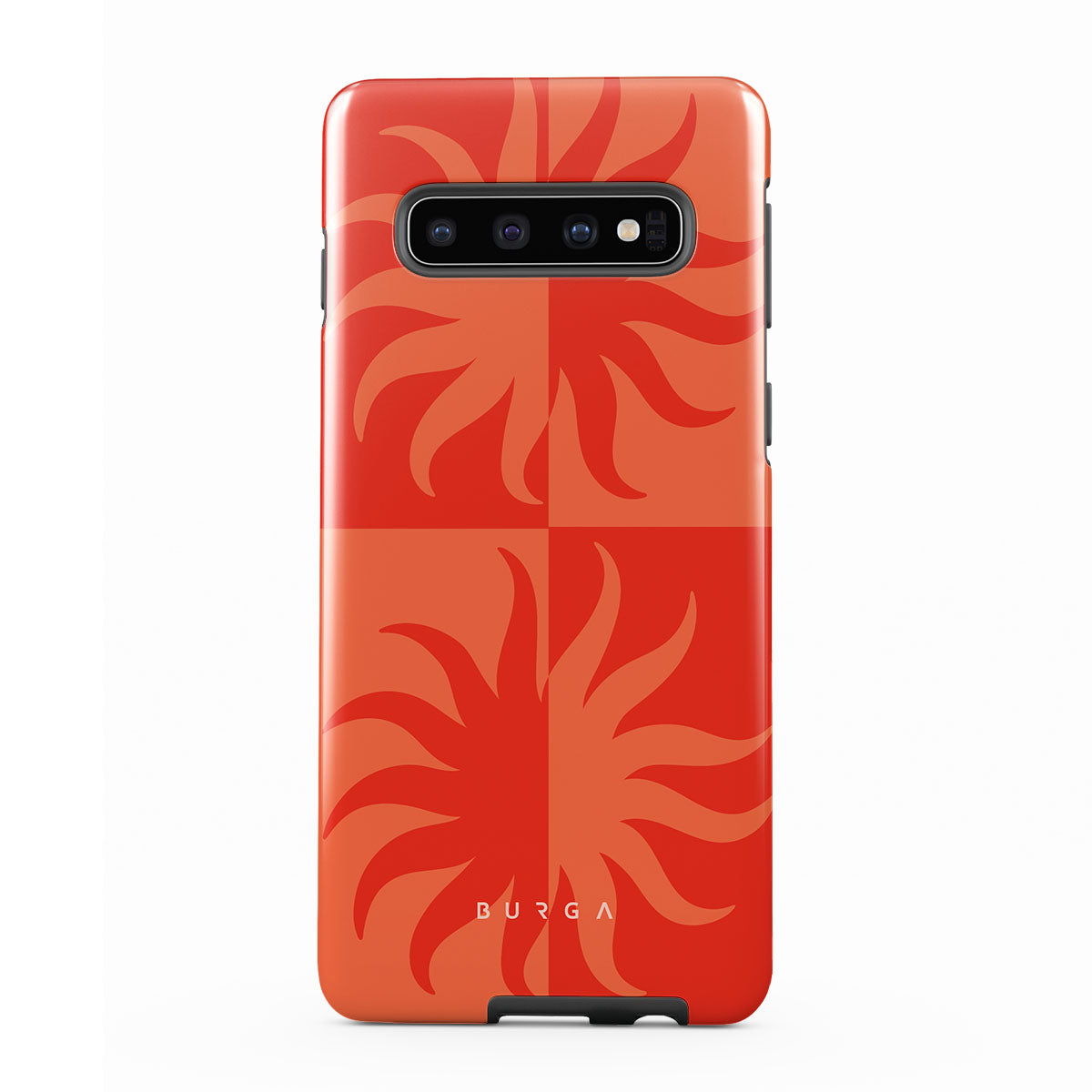 Feel the warmth with this fiery orange Samsung Galaxy S10 4G phone case design adorned with bold, radiant hues. Sunkissed captures the vibrant energy of sun-drenched days and the intense beauty of a tropical paradise. Perfect for those who love to stand out.