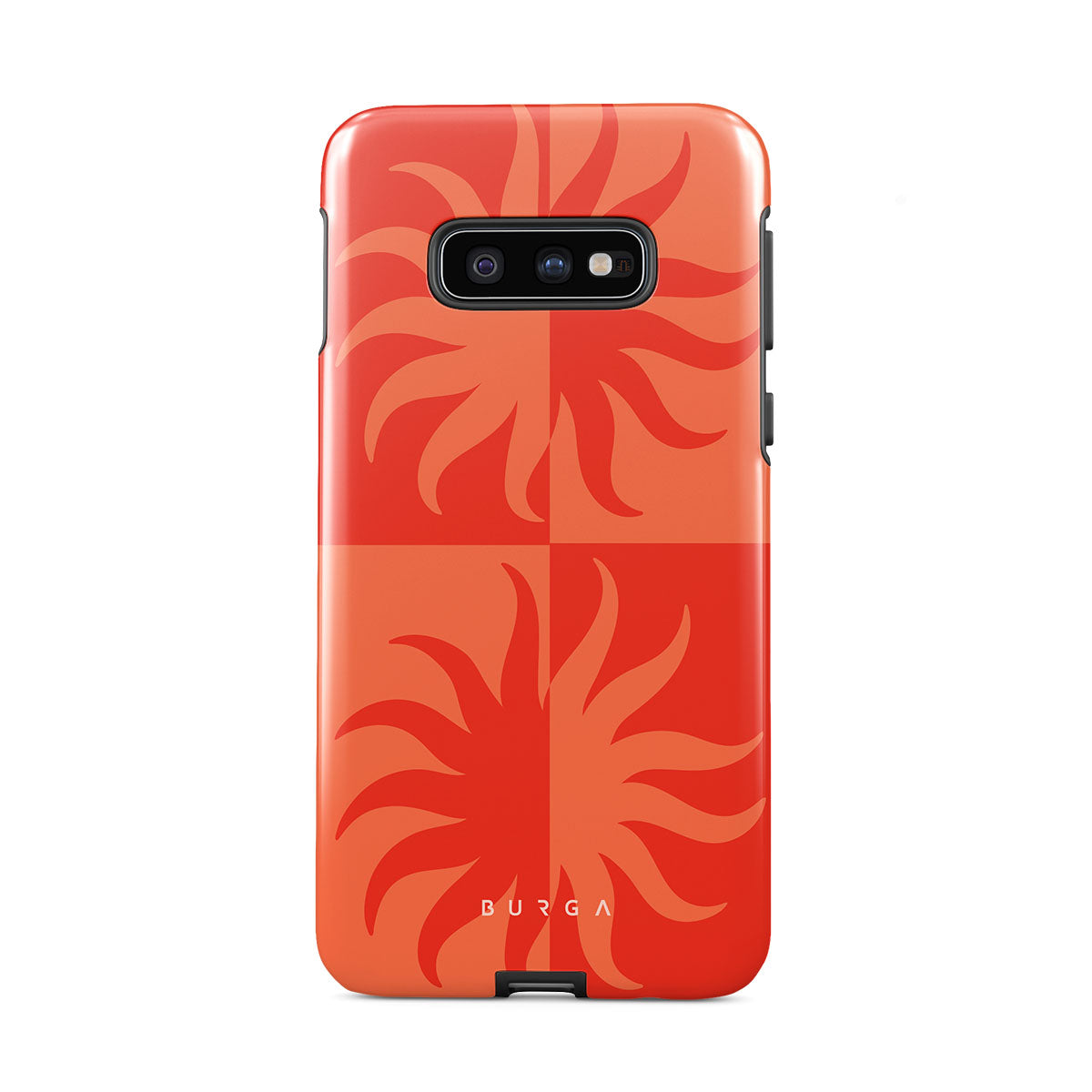 Feel the warmth with this fiery orange Samsung Galaxy S10E phone case design adorned with bold, radiant hues. Sunkissed captures the vibrant energy of sun-drenched days and the intense beauty of a tropical paradise. Perfect for those who love to stand out.