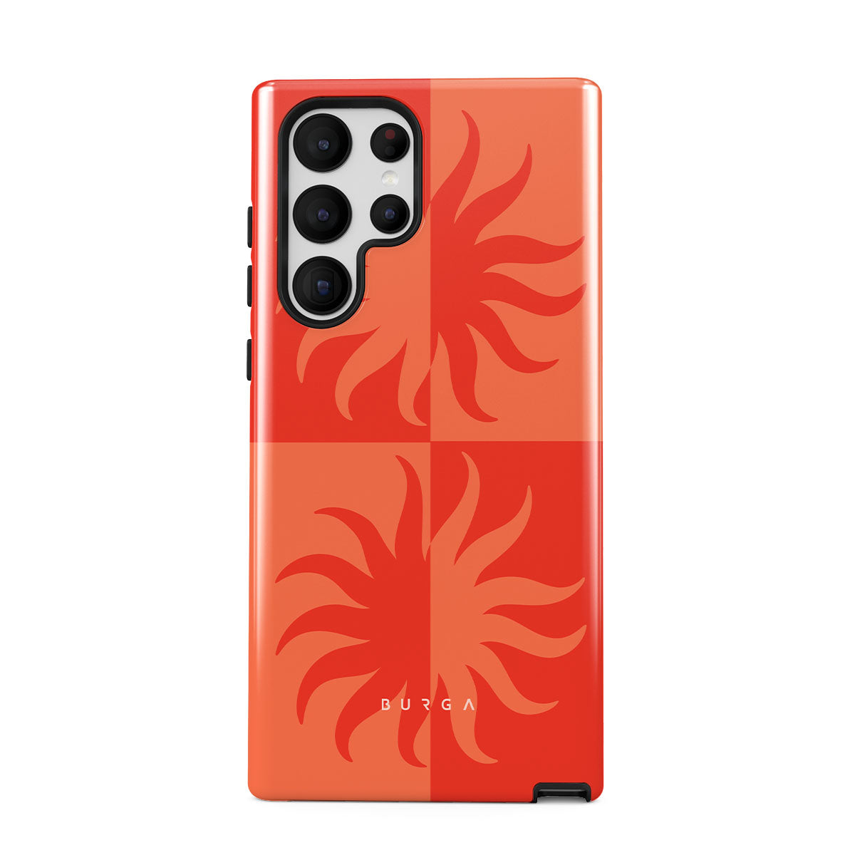 Feel the warmth with this fiery orange Samsung Galaxy S22 Ultra phone case design adorned with bold, radiant hues. Sunkissed captures the vibrant energy of sun-drenched days and the intense beauty of a tropical paradise. Perfect for those who love to stand out.