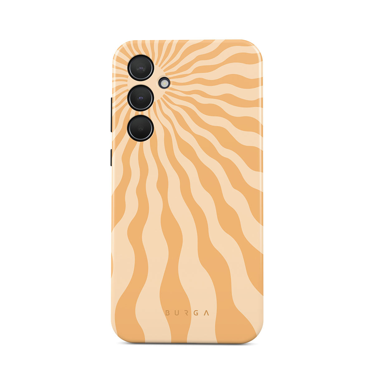 Release your inner hippie with our Sunny Bunny Samsung Galaxy A35 phone case. The effortlessly flowing sun design with a wave touch will surely brighten your accessories game. This is just the right amount of nostalgia and groove for your device.