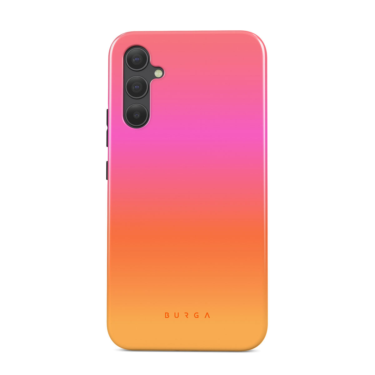 This Sunset Club Samsung Galaxy A34 phone case captures the mesmerizing hues of a fading sun, blending fiery oranges and passionate pinks that dance like the horizon at dusk. It's an everyday tribute to the light’s farewell kiss.
