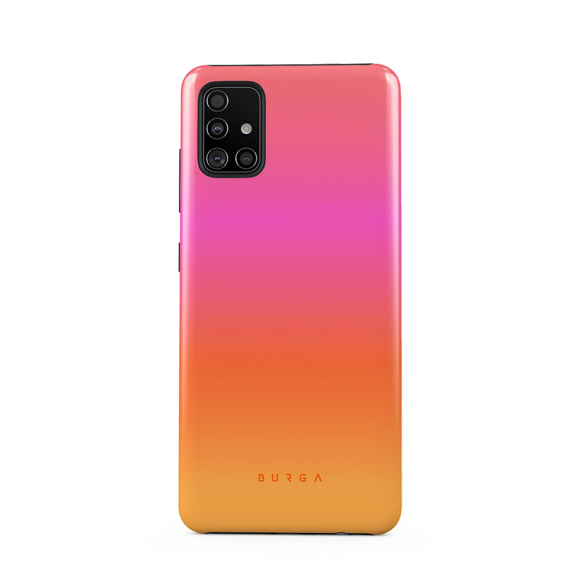 This Sunset Club Samsung Galaxy A51 4G phone case captures the mesmerizing hues of a fading sun, blending fiery oranges and passionate pinks that dance like the horizon at dusk. It's an everyday tribute to the light’s farewell kiss.