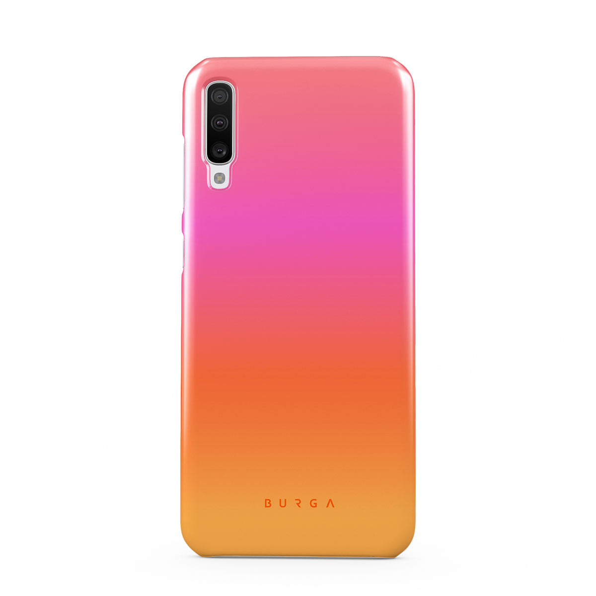 This Sunset Club Samsung Galaxy A70 phone case captures the mesmerizing hues of a fading sun, blending fiery oranges and passionate pinks that dance like the horizon at dusk. It's an everyday tribute to the light’s farewell kiss.