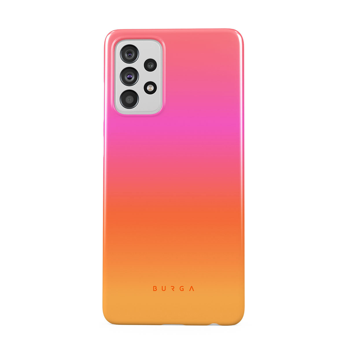 This Sunset Club Samsung Galaxy A72 4G / 5G phone case captures the mesmerizing hues of a fading sun, blending fiery oranges and passionate pinks that dance like the horizon at dusk. It's an everyday tribute to the light’s farewell kiss.