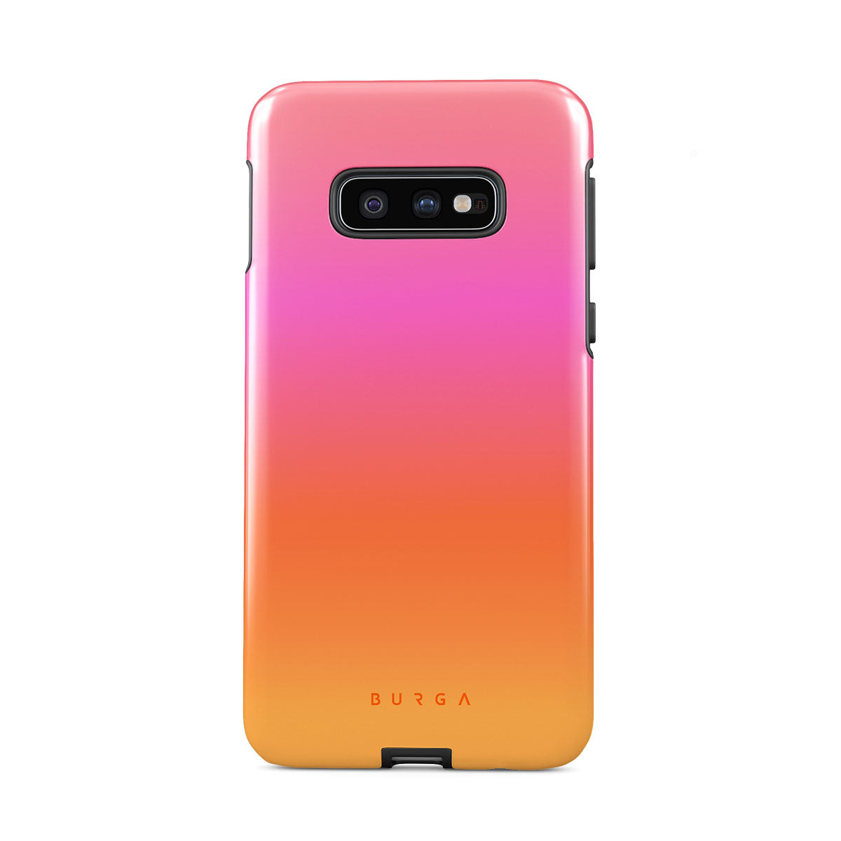 This Sunset Club Samsung Galaxy S10E phone case captures the mesmerizing hues of a fading sun, blending fiery oranges and passionate pinks that dance like the horizon at dusk. It's an everyday tribute to the light’s farewell kiss.