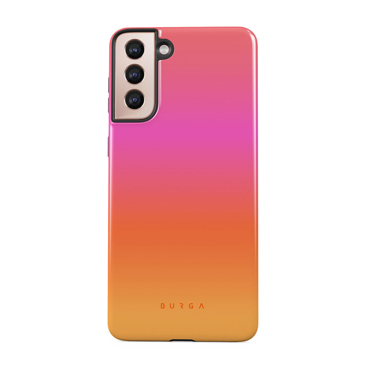 This Sunset Club Samsung Galaxy S21 Plus phone case captures the mesmerizing hues of a fading sun, blending fiery oranges and passionate pinks that dance like the horizon at dusk. It's an everyday tribute to the light’s farewell kiss.