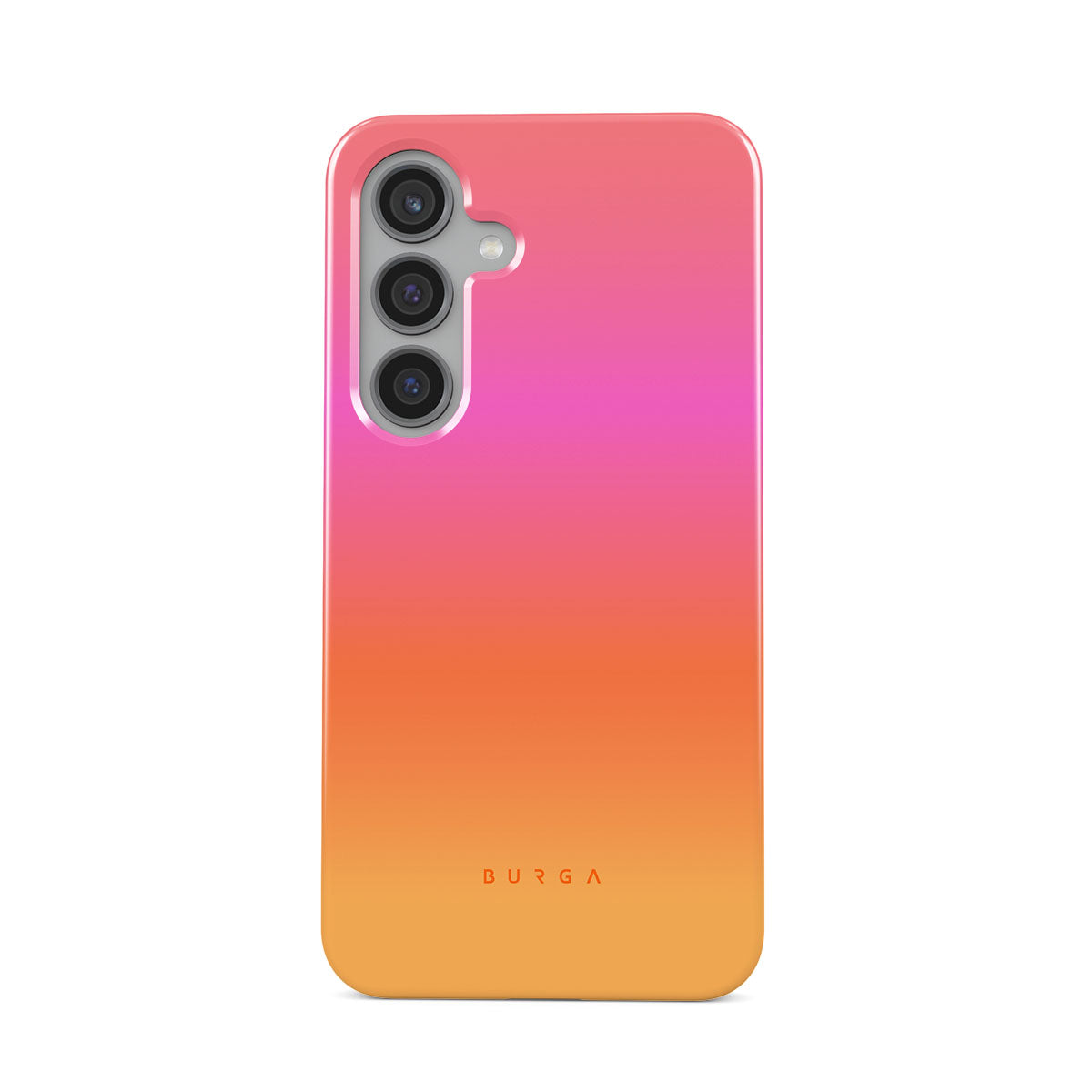 This Sunset Club Samsung Galaxy S24 FE phone case captures the mesmerizing hues of a fading sun, blending fiery oranges and passionate pinks that dance like the horizon at dusk. It's an everyday tribute to the light’s farewell kiss.
