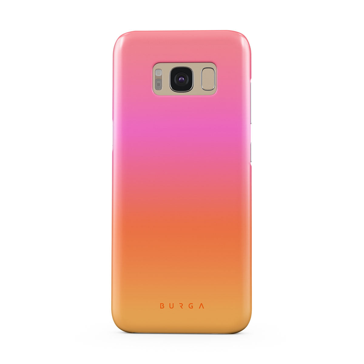 This Sunset Club Samsung Galaxy S8 phone case captures the mesmerizing hues of a fading sun, blending fiery oranges and passionate pinks that dance like the horizon at dusk. It's an everyday tribute to the light’s farewell kiss.