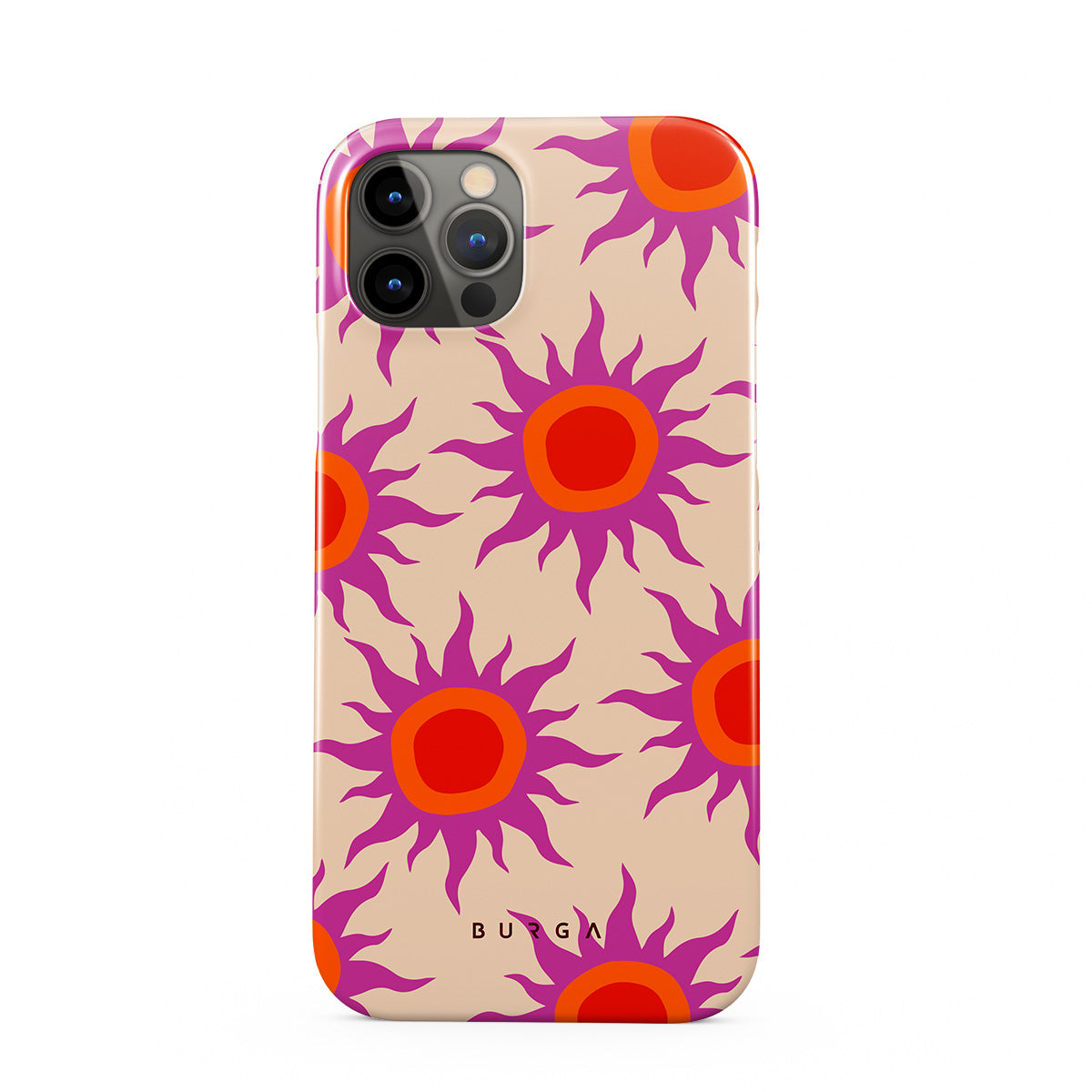 Discover the radiant serenity of the Sunset Glow design, a harmonious blend of soothing pastels and fiery suns. Vivacious viva magenta rays add a playful touch, perfectly balancing tranquility and dynamism. More than just a fashion accessory, this striking iPhone 12 Pro Max phone case mirrors your unique personality and zest for life.