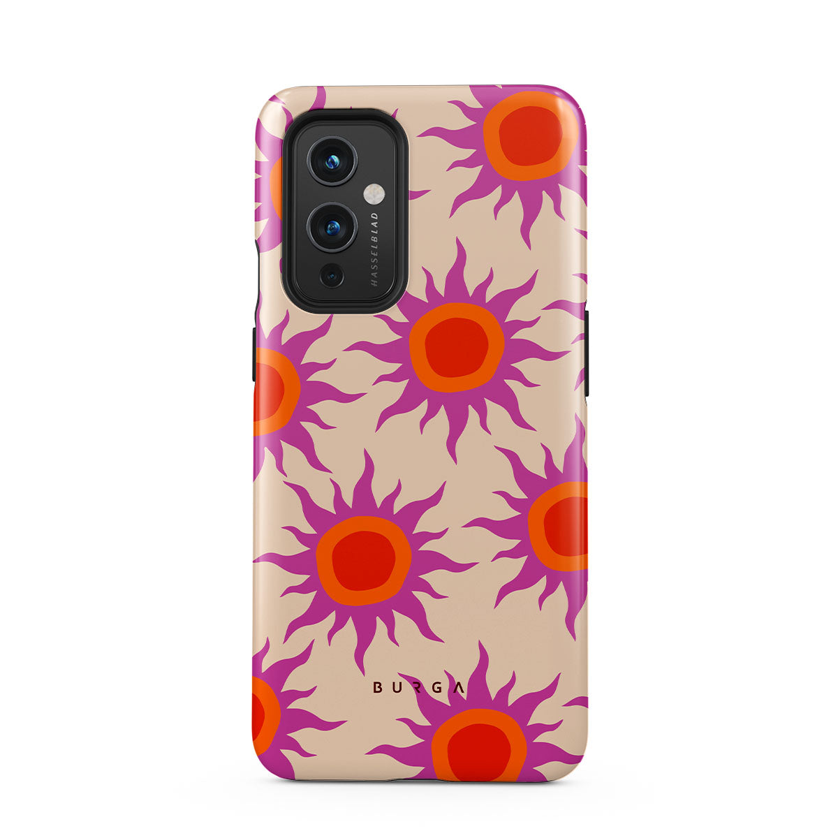 Discover the radiant serenity of the Sunset Glow design, a harmonious blend of soothing pastels and fiery suns. Vivacious viva magenta rays add a playful touch, perfectly balancing tranquility and dynamism. More than just a fashion accessory, this striking OnePlus 9 Pro phone case mirrors your unique personality and zest for life.