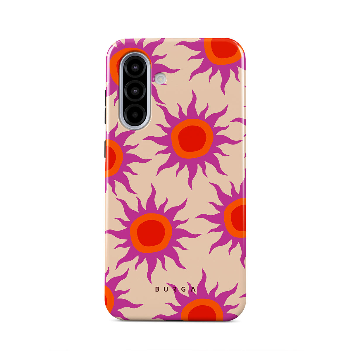 Discover the radiant serenity of the Sunset Glow design, a harmonious blend of soothing pastels and fiery suns. Vivacious viva magenta rays add a playful touch, perfectly balancing tranquility and dynamism. More than just a fashion accessory, this striking Samsung Galaxy A36 5G phone case mirrors your unique personality and zest for life.